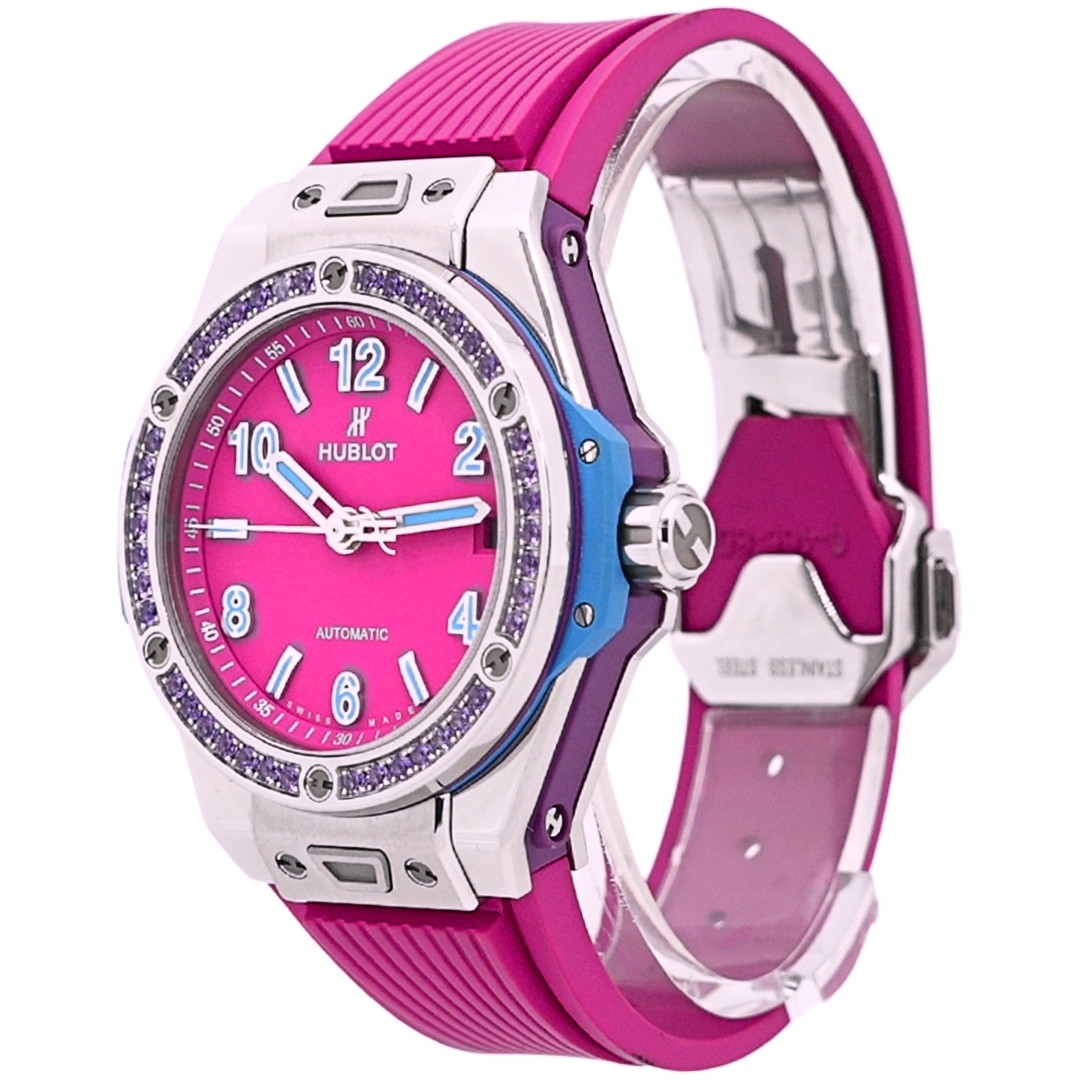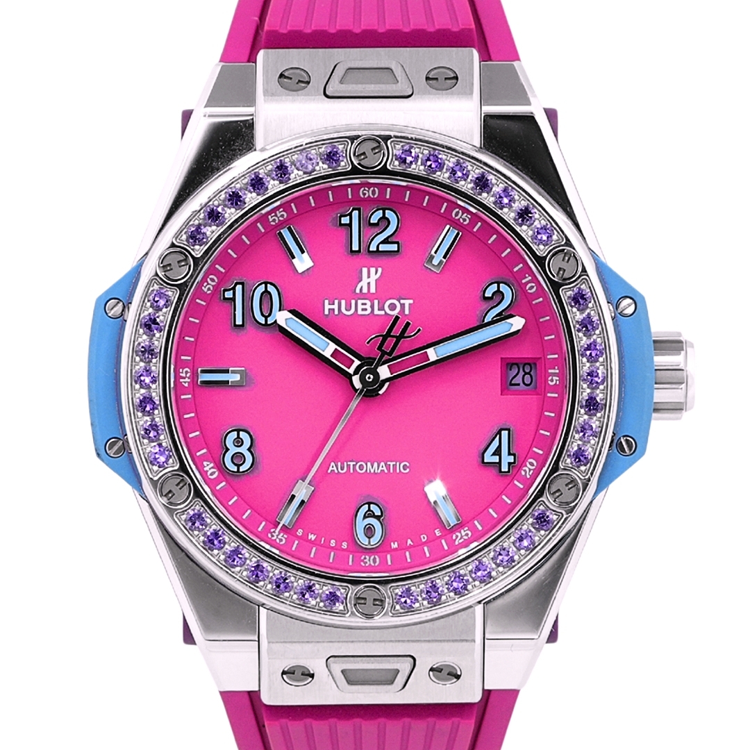Hublot Big Bang One Click Pop Art Watch, Pink Rubber Strap with a Steel Case & Clasp on an Amethyst Set Bezel on a Pink Dial