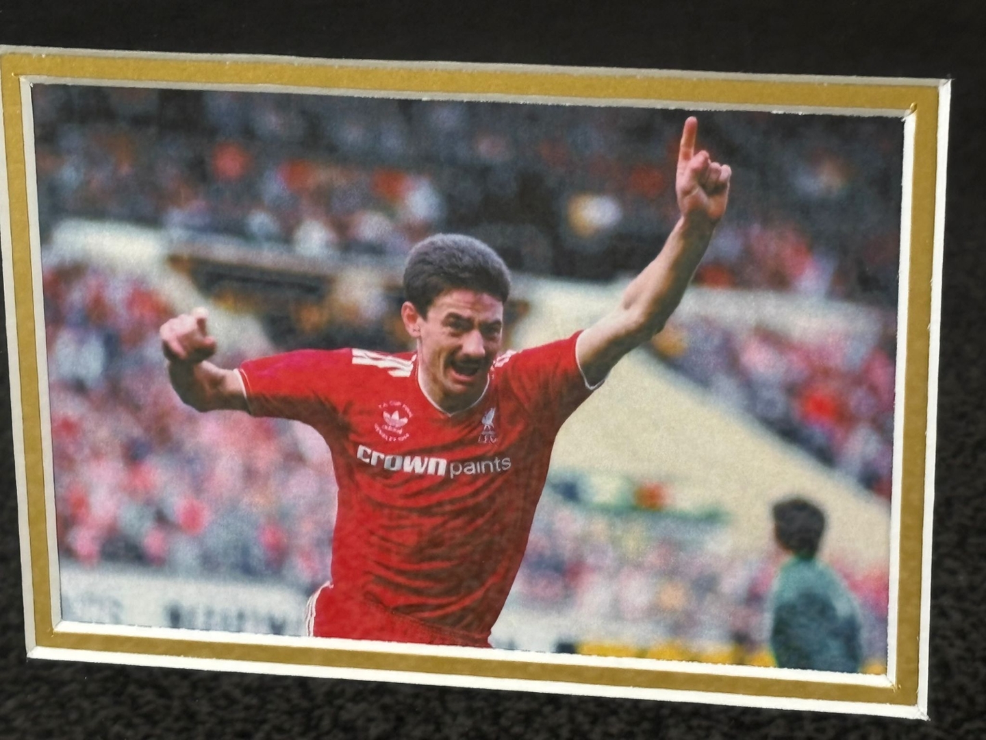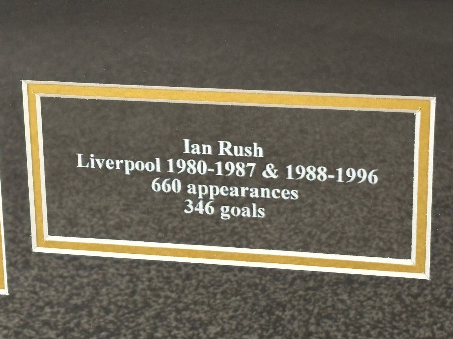 Measuring approximately 87cm in height and 67cm in width, this framed presentation is a striking addition to any football collection. A timeless tribute to Ian Rush — a true Liverpool icon and one of the most prolific strikers ever to grace the game.