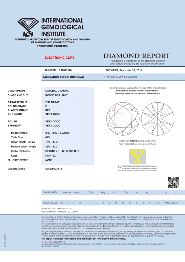 This ring has its own unique IGI serial number laser-engraved on the diamond.