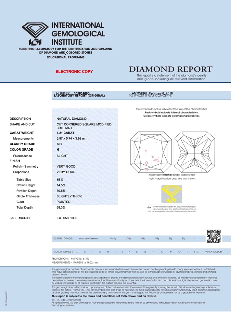 This ring has a unique IGI serial number laser-engraved on the diamond.