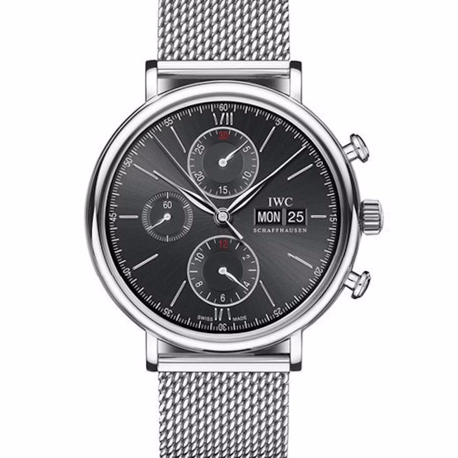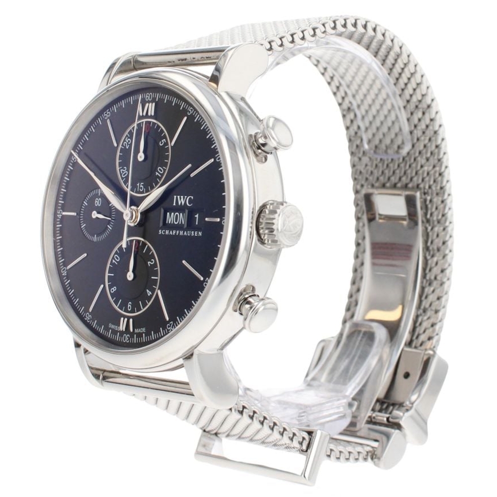An IWC Portofino Chronograph Watch, Stainless Steel with a Black dial.