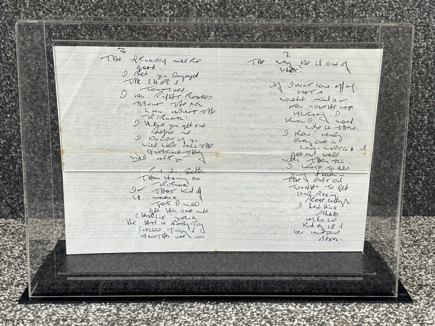The letter is presented across multiple handwritten pages, offering a personal and intimate insight into Reggie Kray’s thoughts during incarceration. The handwriting is clearly visible throughout, with natural variations and tone that reinforce its authenticity and historical significance. The inclusion of prison-stamped paper further enhances the provenance, grounding the piece firmly within a specific moment in time and adding depth to its story.