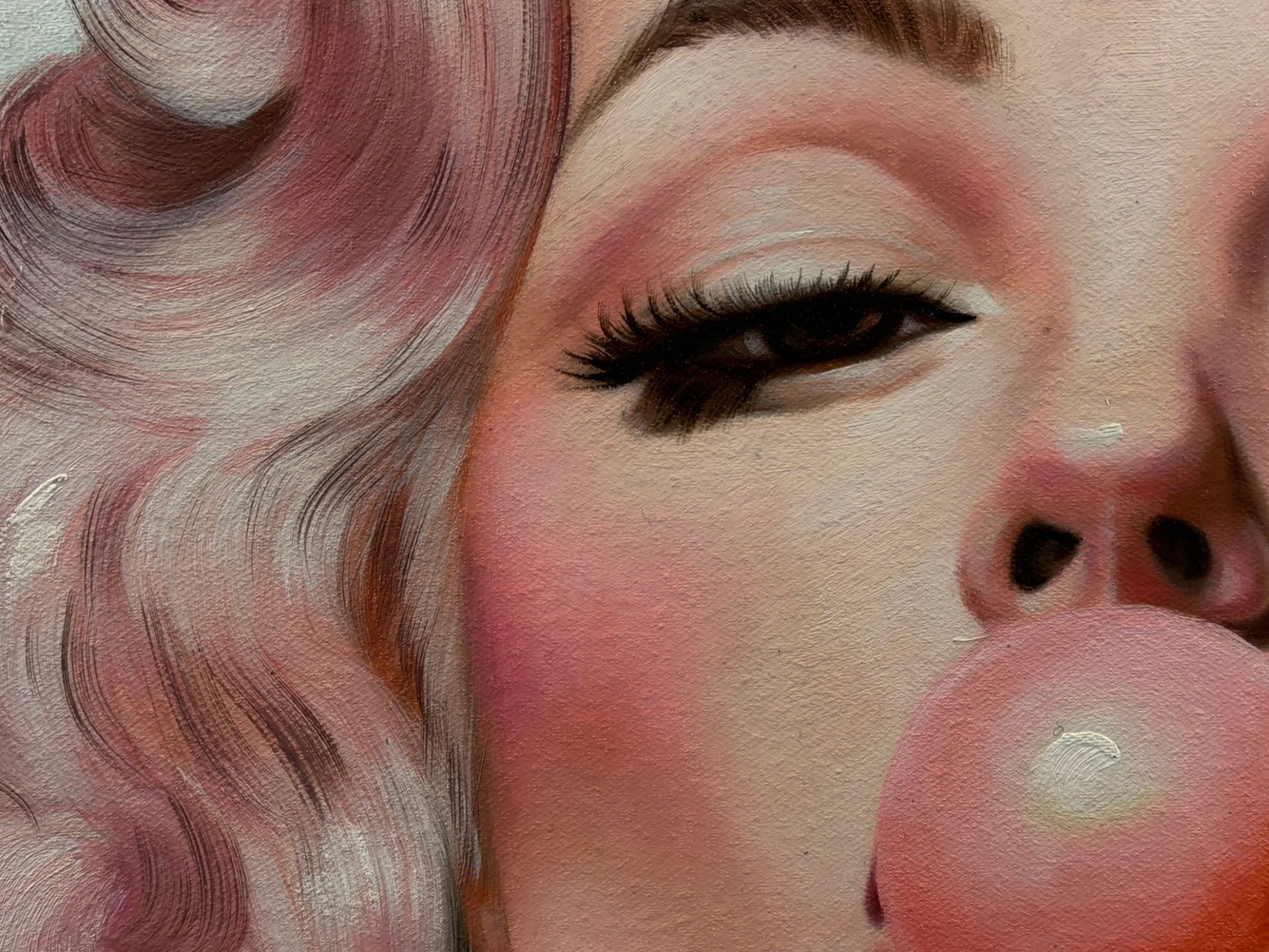 - > Large Oil Painting by the Artist Fournier titled Bubble Gum L'Icone Pop.