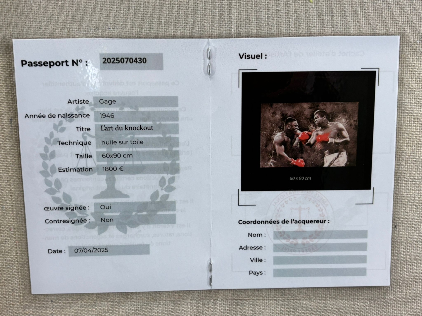 Valued at €1800, L’art du Knockout is an unmissable collector’s piece—a tribute not only to sport, but to the icons who redefined greatness inside the ring.