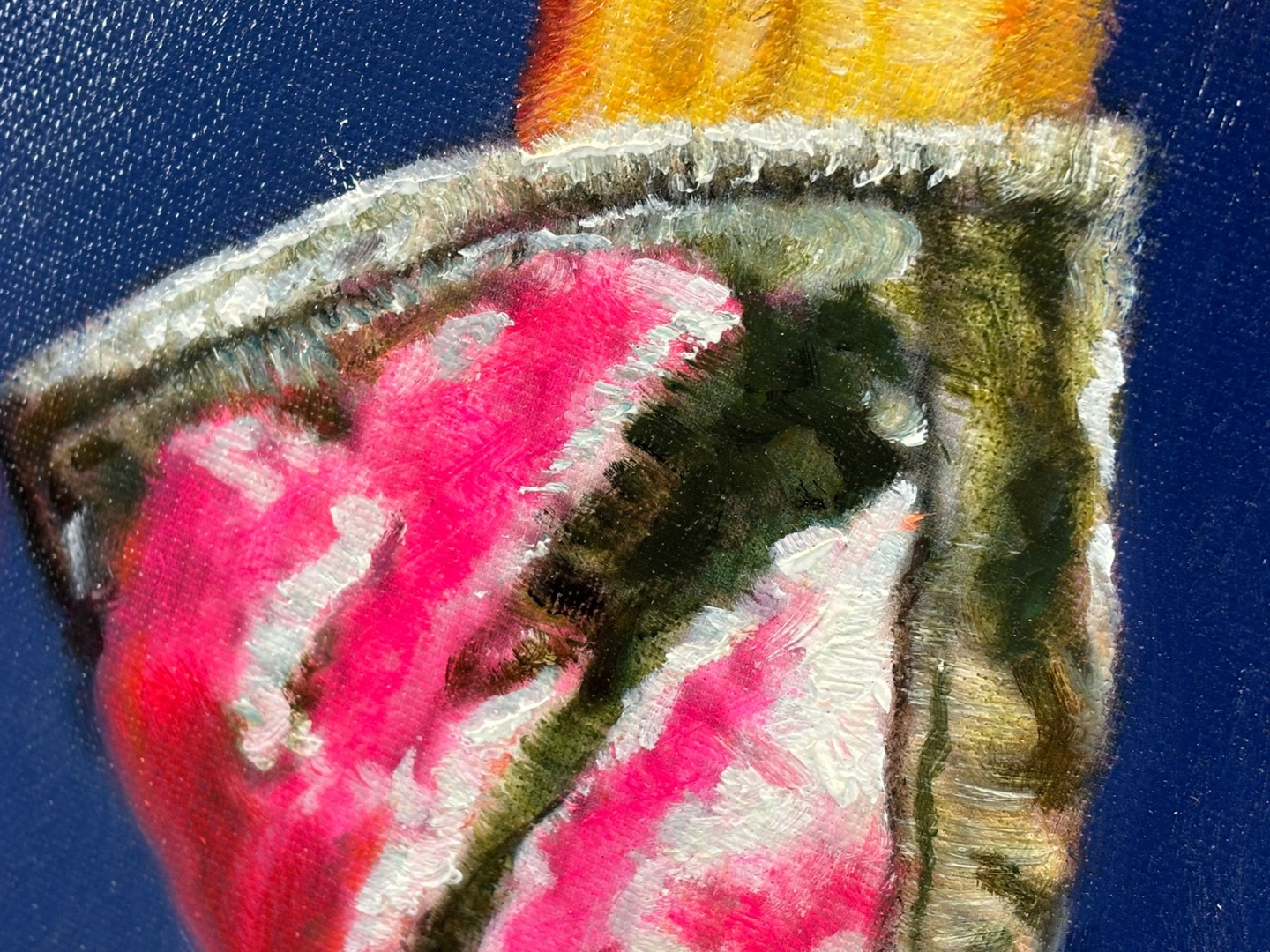 Muller’s expressive brushwork and bold palette bring this scene to life, blending deep blues, fiery reds, and glowing highlights to echo the intensity of Queen’s live performances. The dynamic contrast between light and shadow enhances the realism, giving the impression of movement and music bursting from the canvas itself.