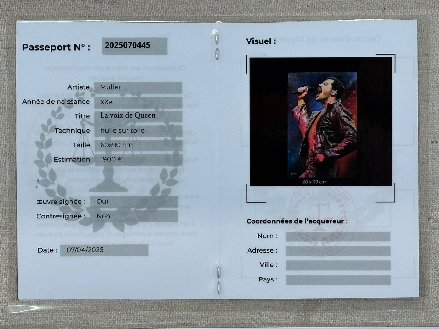 Presented in a refined silver frame and valued at €1900, La Voix de Queen stands as both a stunning work of art and a heartfelt homage to the enduring legacy of Freddie Mercury.