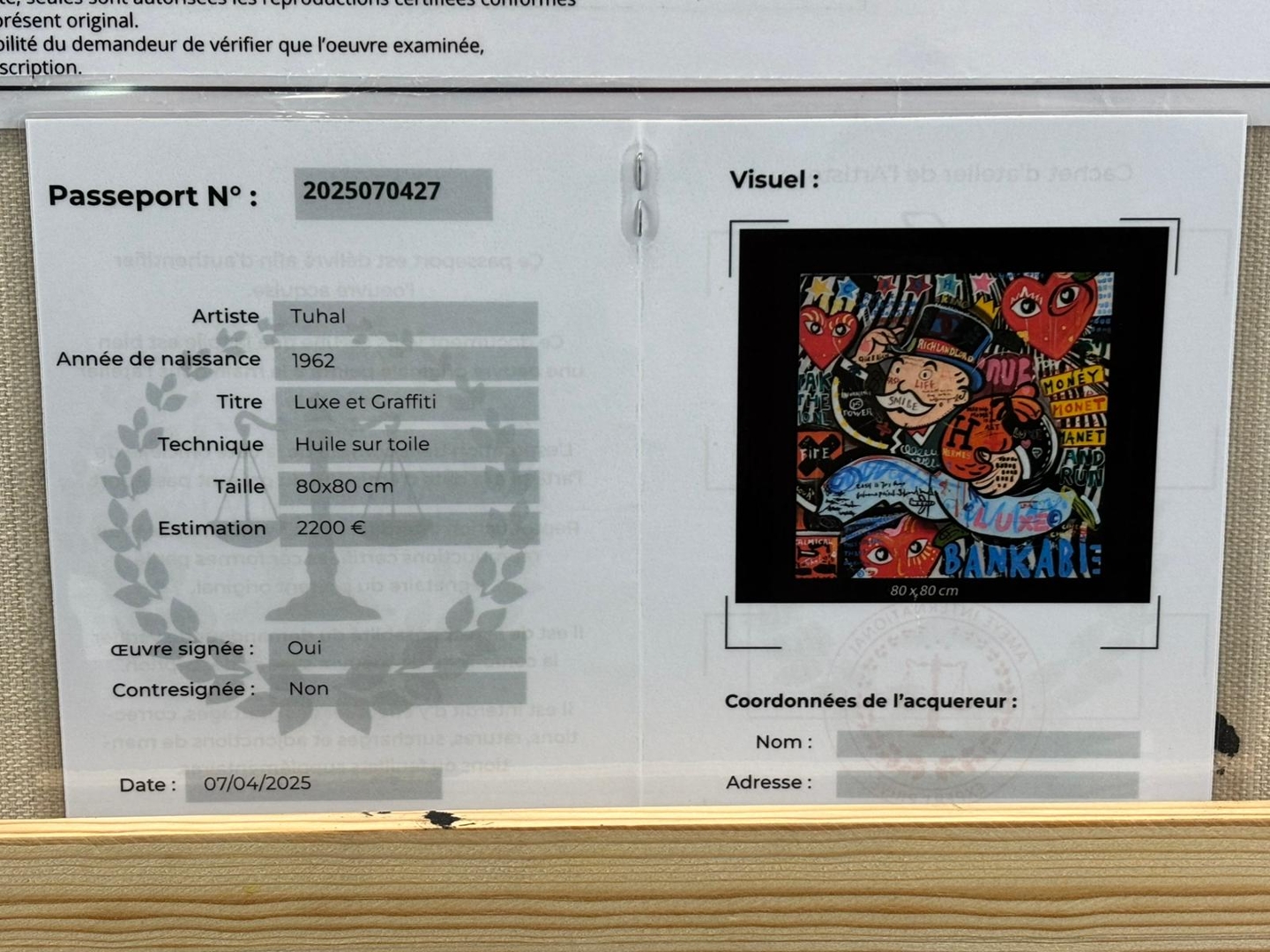 Valued at €2200, Luxe et Graffiti is a bold acquisition—perfect for collectors who crave art that’s loud, unapologetic, and culturally on point.