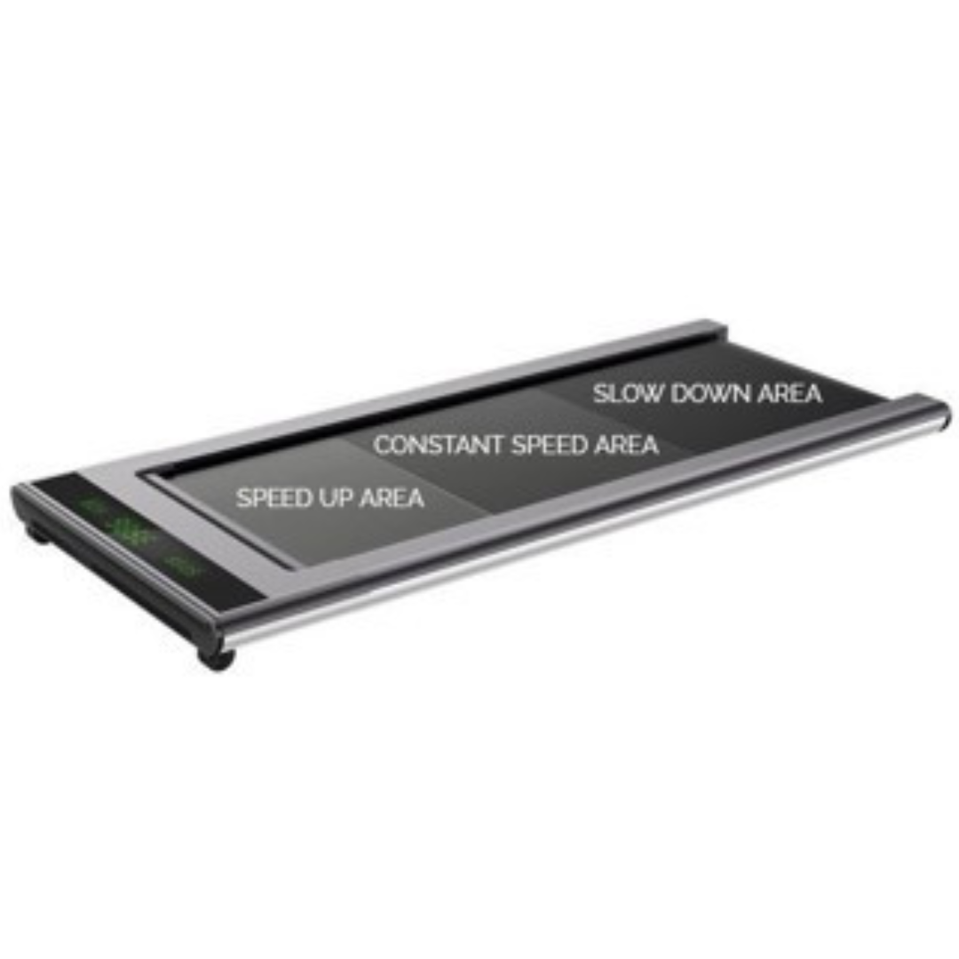 Equipped with smart infrared speed-sensing technology, this innovative treadmill automatically adjusts to your position—move forward to speed up, drift back to slow down, or stay centred to maintain your pace. With a maximum speed of 8 km/h when the handrails are raised (6 km/h when lowered), it’s ideal for alternating between walking and light running. A simple handheld remote is also included for manual speed control whenever you prefer.