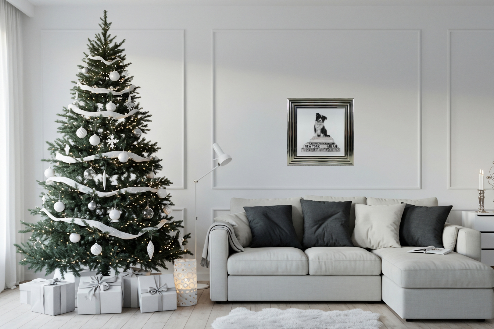 Set against a backdrop of Designer Books, this piece adds an element of sophistication and refinement to your space while also celebrating the timeless bond between humans and their canine companions.