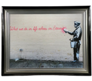The silver frame adds a sleek, modern contrast to the kaleidoscopic background, giving the artwork a clean, polished finish that enhances its presence in any space. Einstein's image is cleverly woven into a chaotic yet controlled palette that symbolises both genius and creative freedom, inviting viewers to think differently and embrace the unexpected.