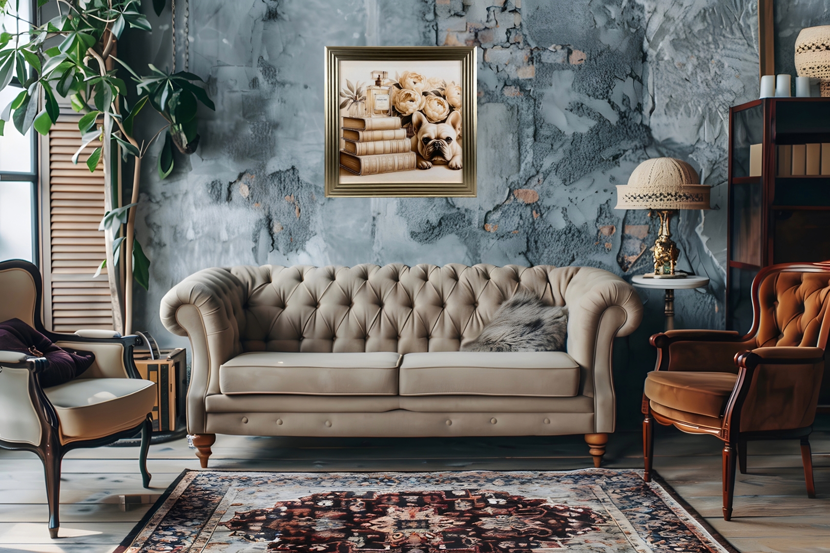 Perfect for living rooms, bedrooms, or reading nooks, Bulldog and Books offers a blend of elegance, comfort, and style, making it a delightful addition to any home décor.