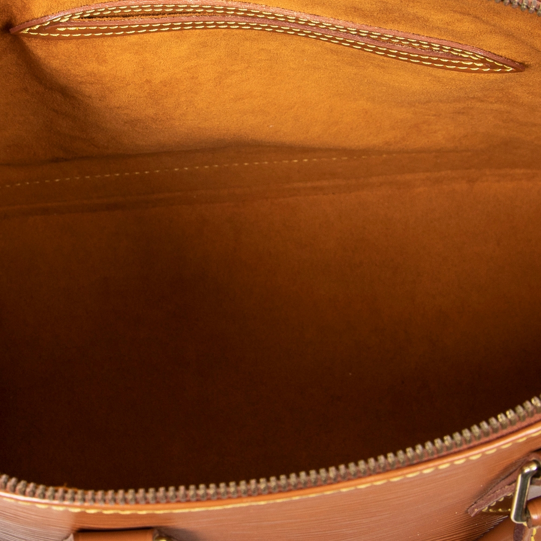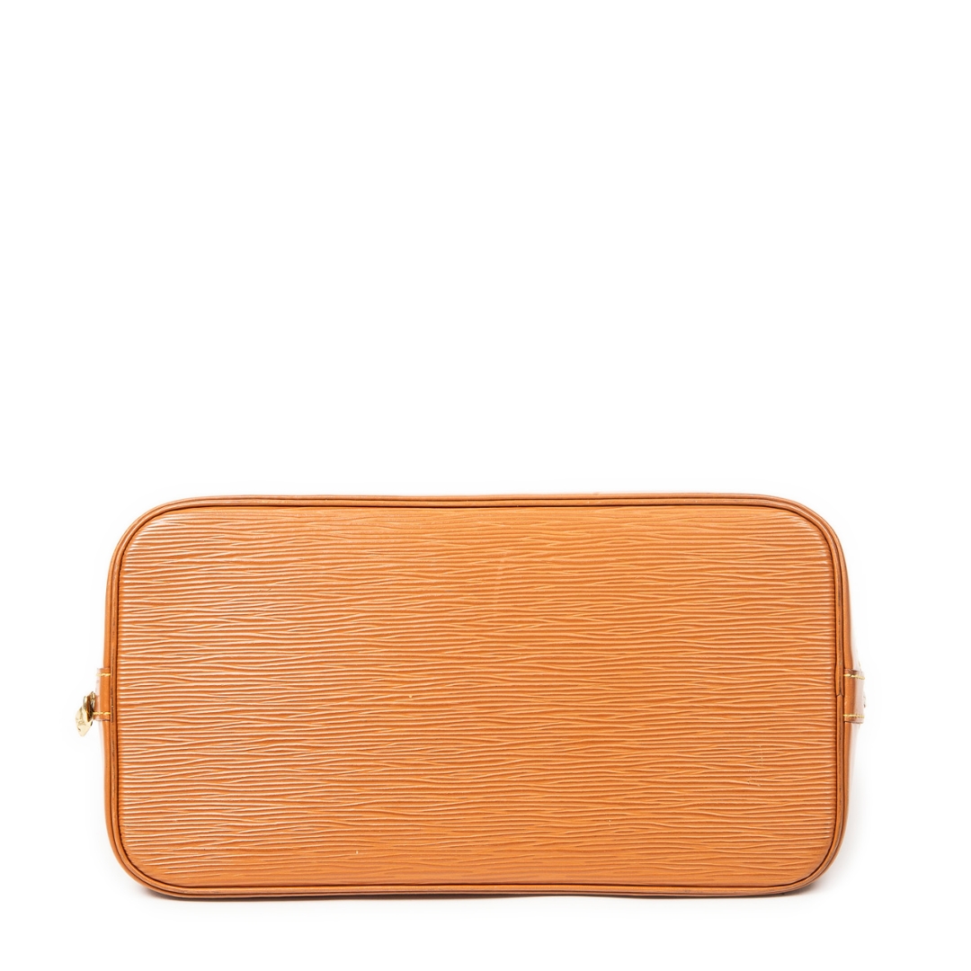 A vintage Louis Vuitton gold calf leather Alma bag with a certificate of authenticity, Approximately 23cm height, 30cm width.