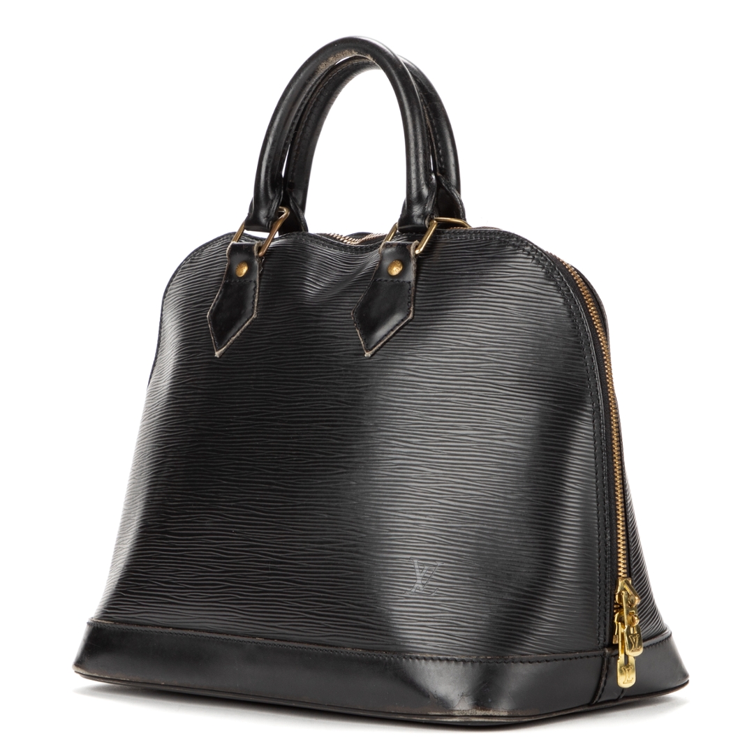 A vintage Black calf leather Louis Vuitton Alma bag with a certificate of authenticity, Approximately 23cm height, 30cm width.