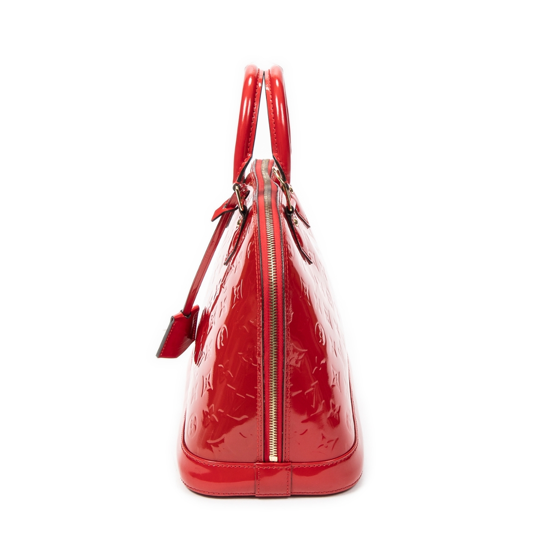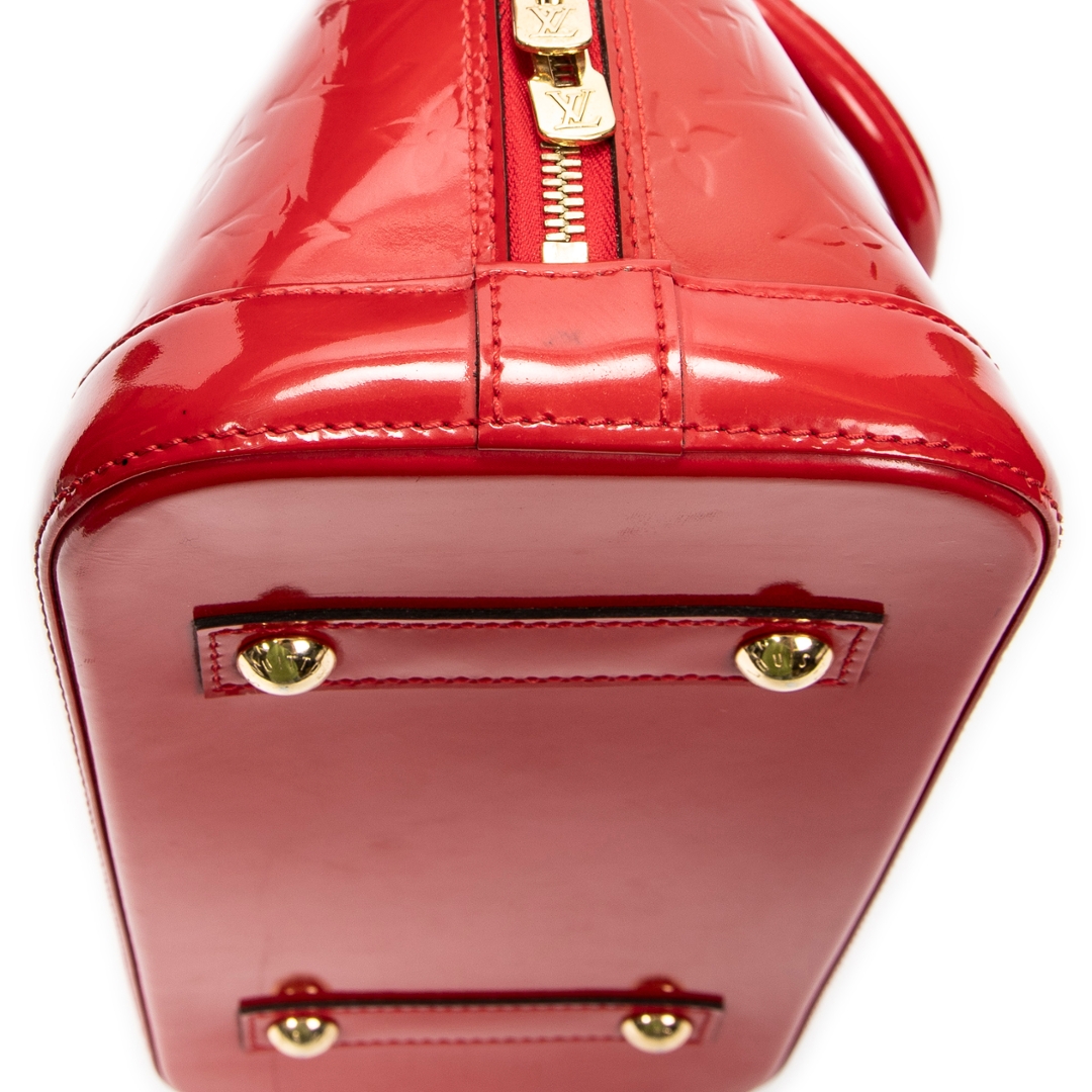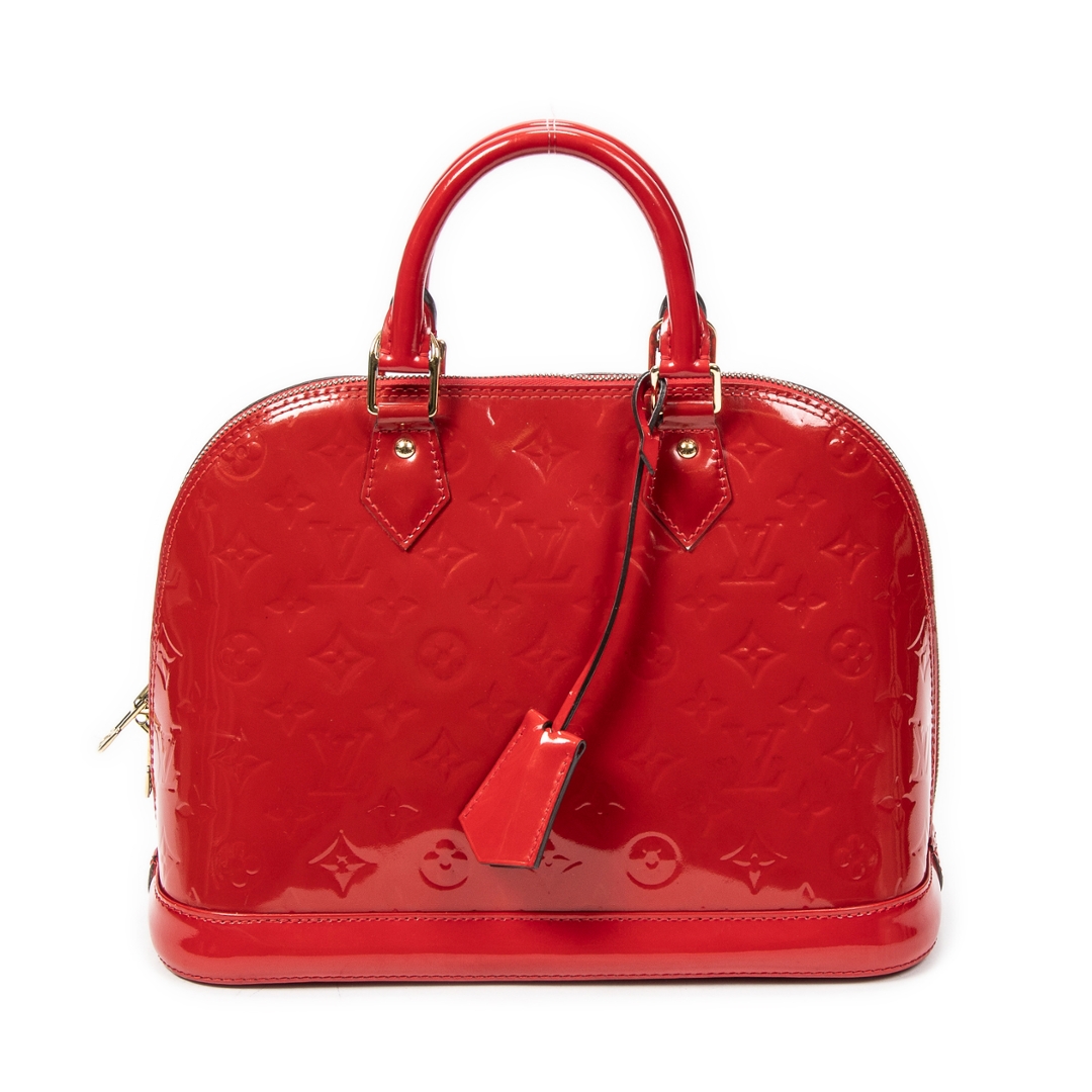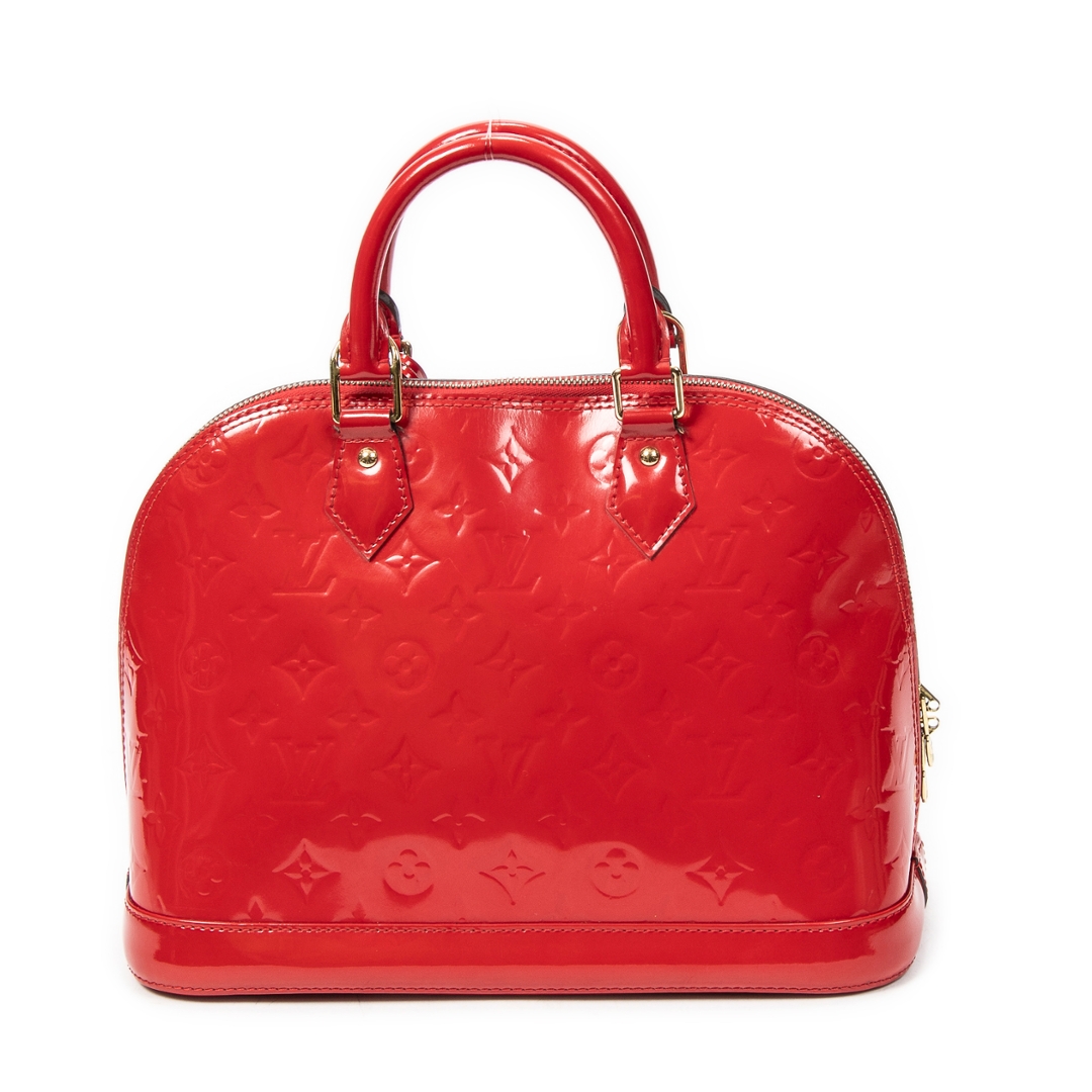 A vintage Louis Vuitton Alma bag crafted in striking Cerise calf leather, offering a bold and luxurious take on the house’s iconic structured silhouette. The vibrant red tone is enhanced by a high-gloss finish and subtle embossed Monogram detailing, complemented by dual rolled top handles, gold-tone hardware, and a secure double zip closure. Measuring approximately 23cm in height and 30cm in width, it provides a well-balanced and versatile size suited to everyday use.