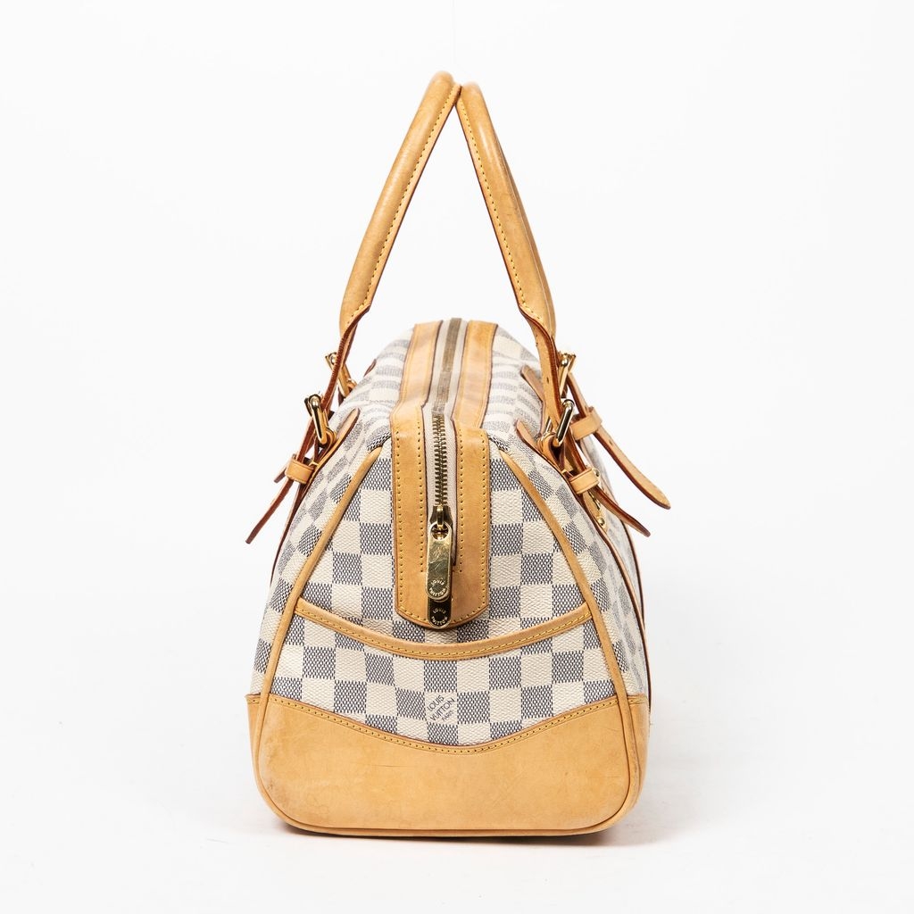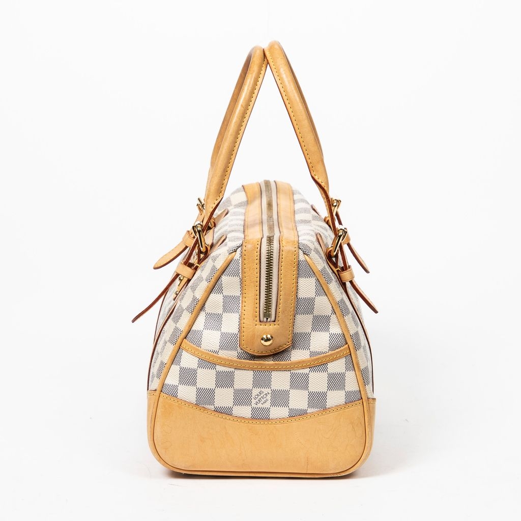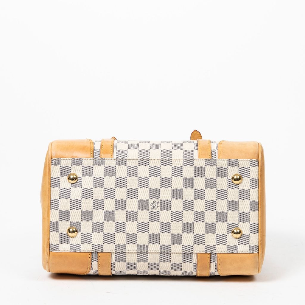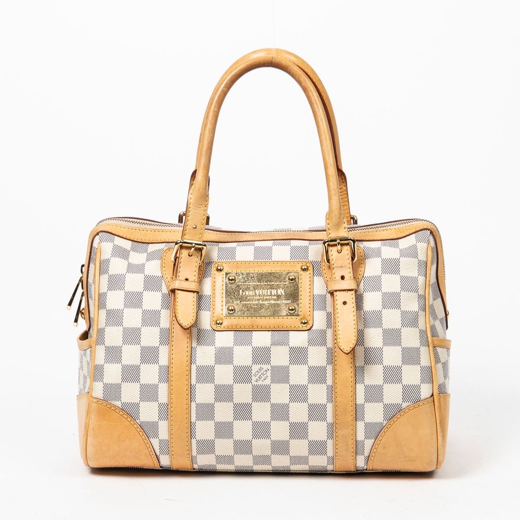 A vintage Louis Vuitton ivory-coated canvas Berkeley bag is an elegant and instantly recognisable accessory. This beautiful piece, which includes a certificate of authenticity, showcases the iconic Damier Azur pattern, a refreshing and sophisticated design perfect for adding a touch of timeless style to any ensemble. The coated canvas is complemented by natural cowhide leather trim, which has developed a lovely honey patina over time, a highly sought-after characteristic of vintage Louis Vuitton bags that adds to its unique charm.