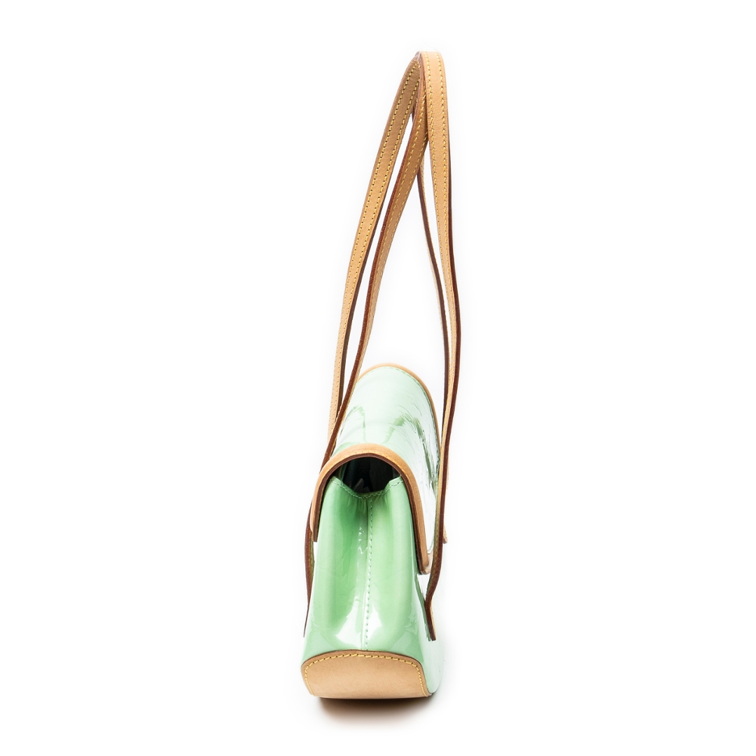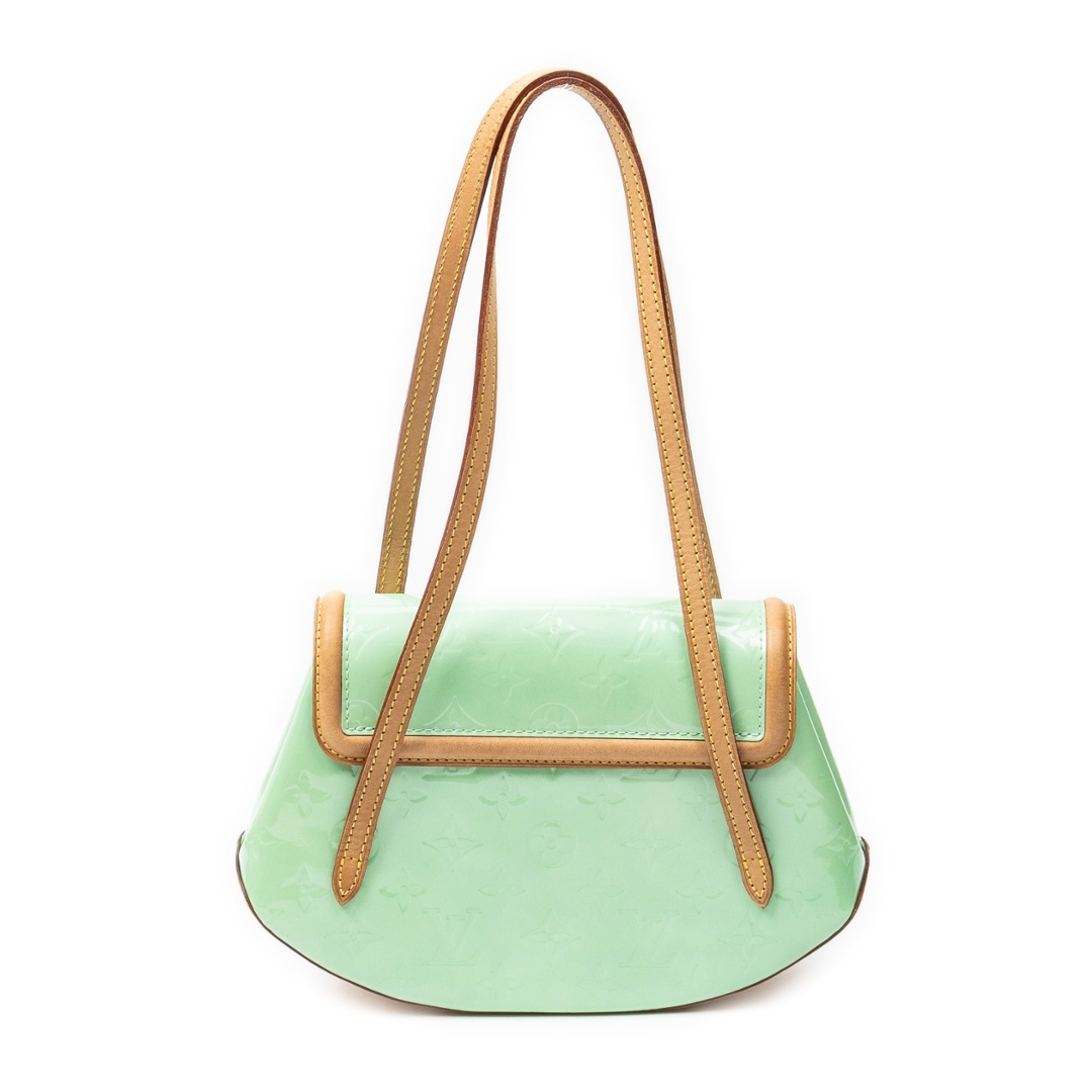 A vintage Louis Vuitton Biscayne Bay bag crafted in striking mint green calf leather, featuring the embossed monogram finish that delivers a refined yet contemporary aesthetic. The softly structured silhouette is complemented by natural leather trim and long shoulder straps, creating a distinctive and elegant profile that stands out within the Louis Vuitton collection.