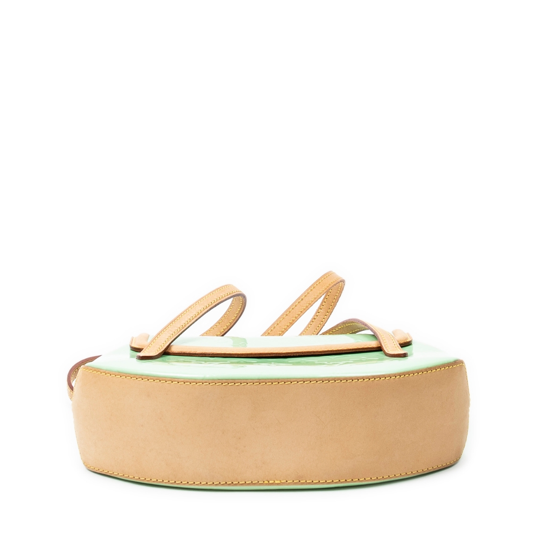 A vintage Louis Vuitton Mint Green Calf Leather Biscayne Bay bag with a certificate of authenticity. Approximately 16cm height, 25cm width.