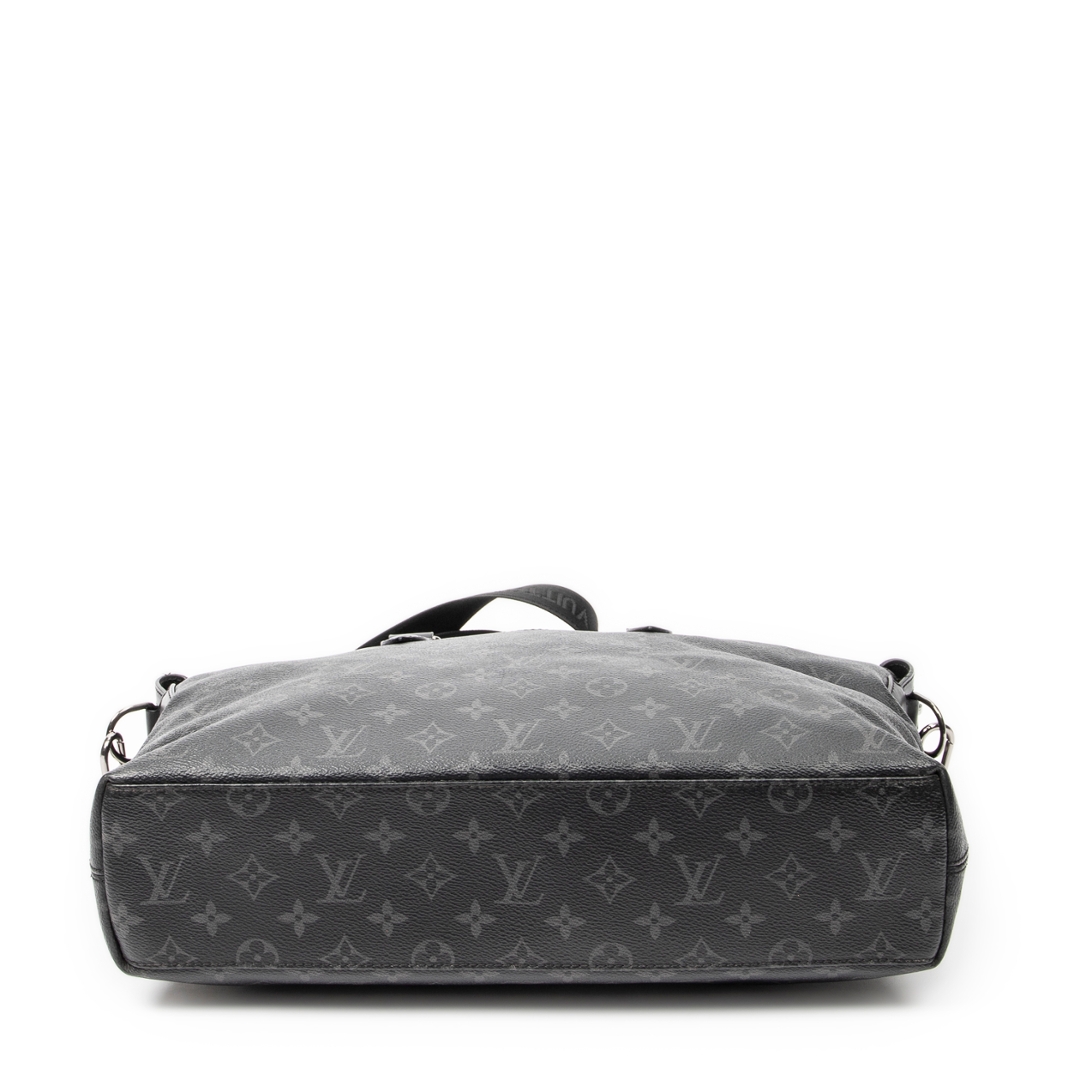 A vintage Louis Vuitton Briefcase Explorer bag crafted in black and grey coated canvas, featuring the subtle Monogram Eclipse pattern for a modern and understated luxury aesthetic. The structured design is complemented by smooth black leather trim, silver-tone hardware, and reinforced top handles, delivering both durability and a refined professional look.