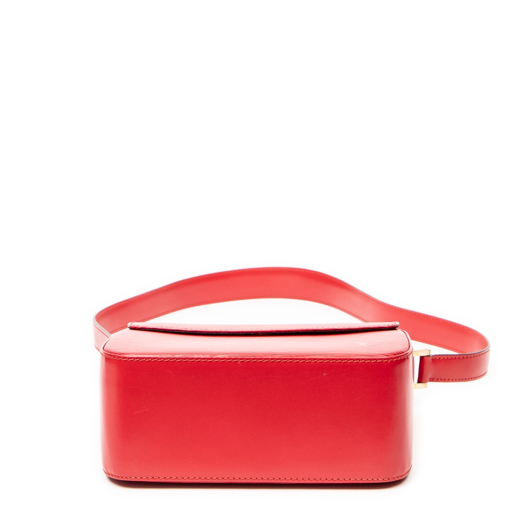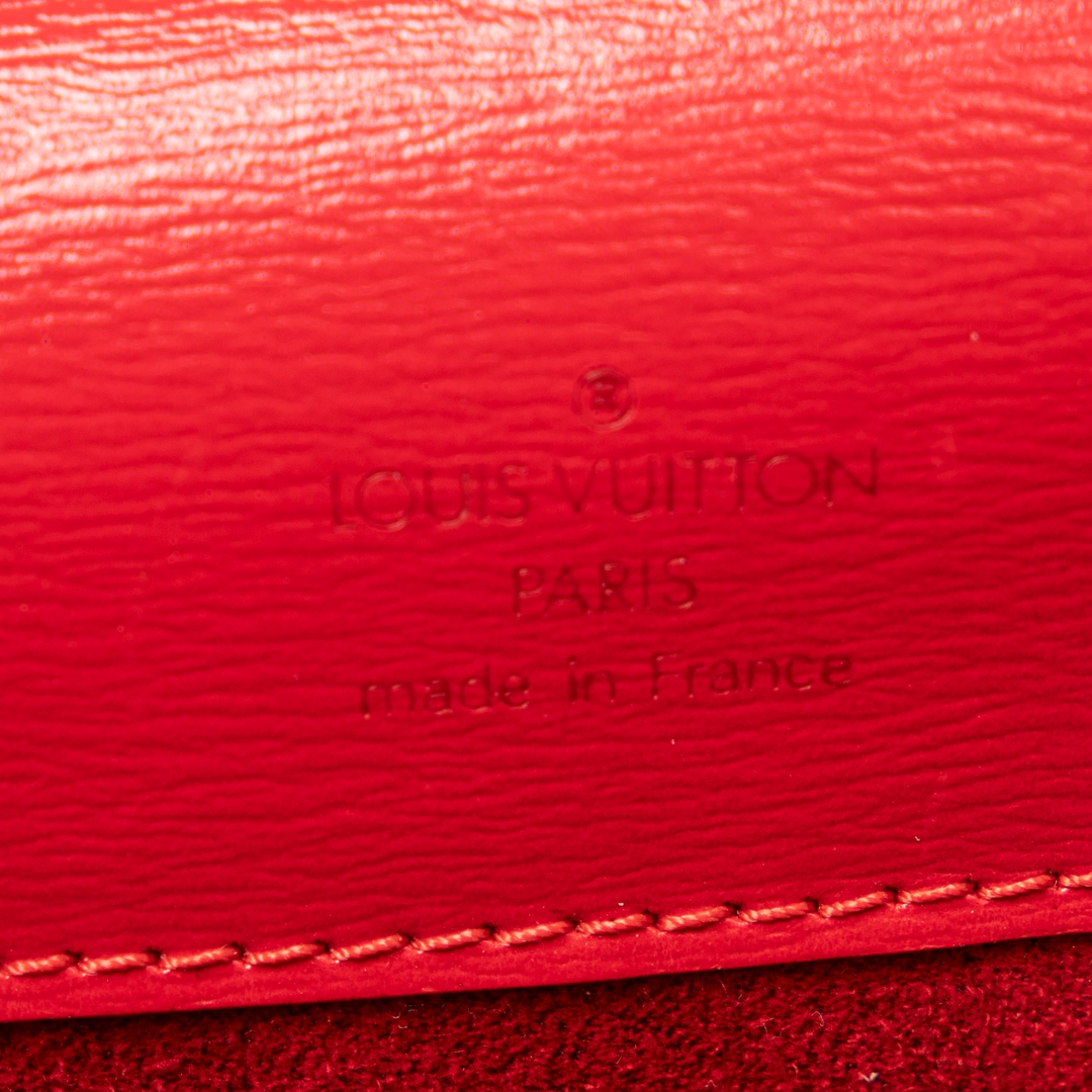 A vintage Louis Vuitton Red Calf Leather Buci bag with a certificate of authenticity. Approximately 16cm height, 20cm width.