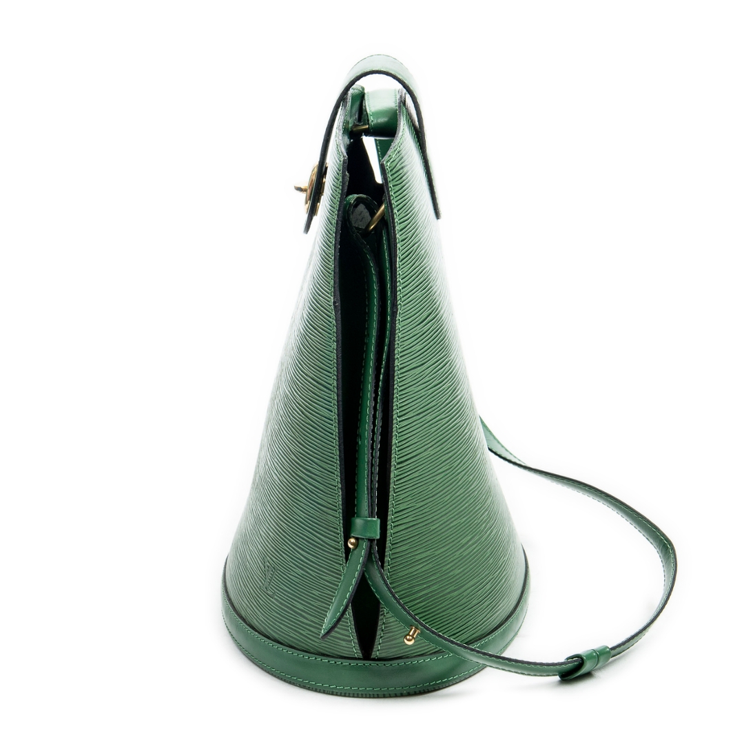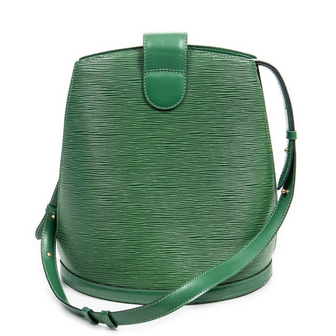 A vintage Louis Vuitton grenn calf leather Cluny bag with a certificate of authenticity. Approximately 30cm height, 26cm width.