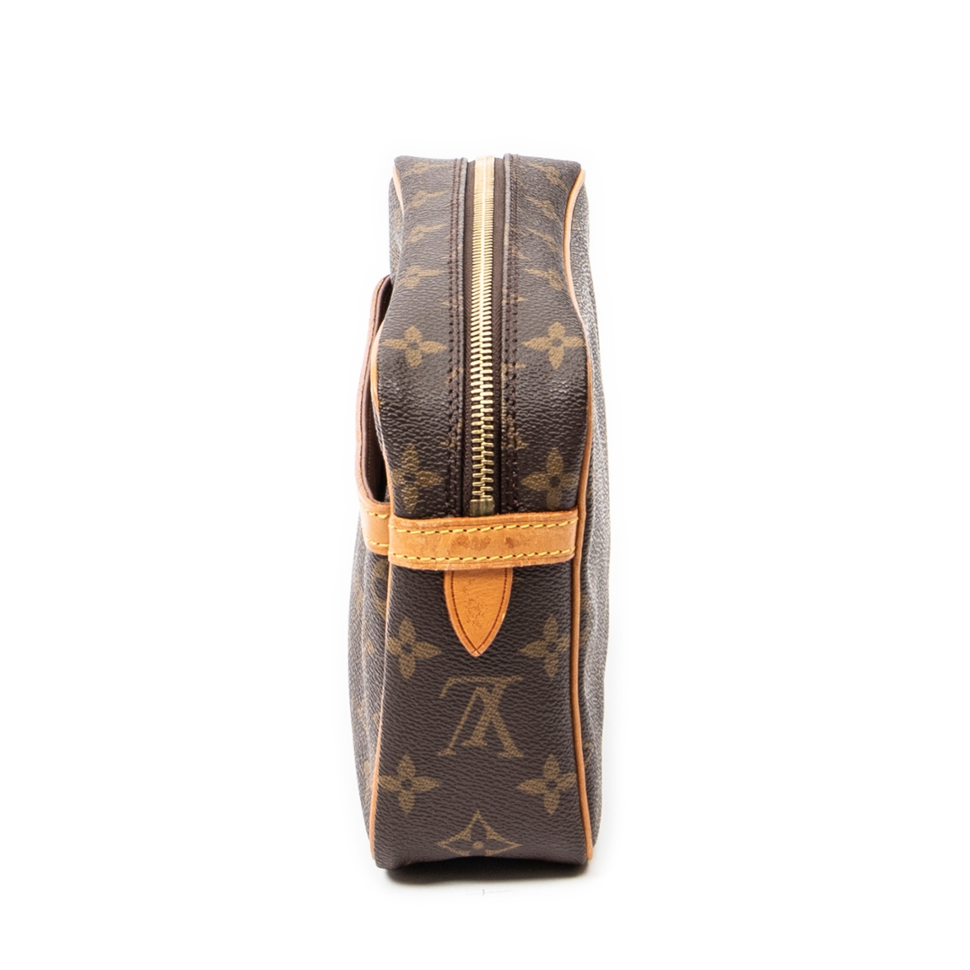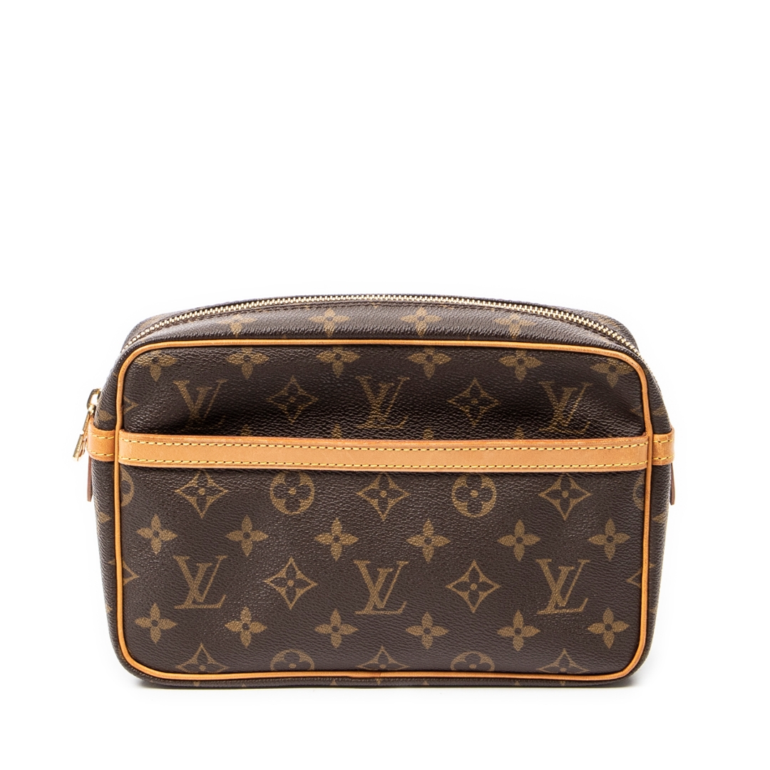 A vintage Louis Vuitton Compiegne bag crafted from the iconic brown coated canvas, featuring the timeless monogram pattern accented with natural leather trim. The compact, structured silhouette is both practical and refined, offering a clean and classic design that has remained popular across generations.
