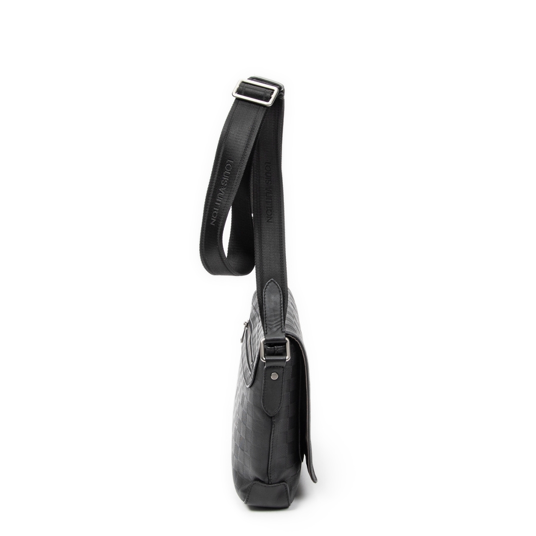 A vintage Louis Vuitton black calf leather District bag with a certificate of authenticity. Approximately 24cm height, 29cm width.