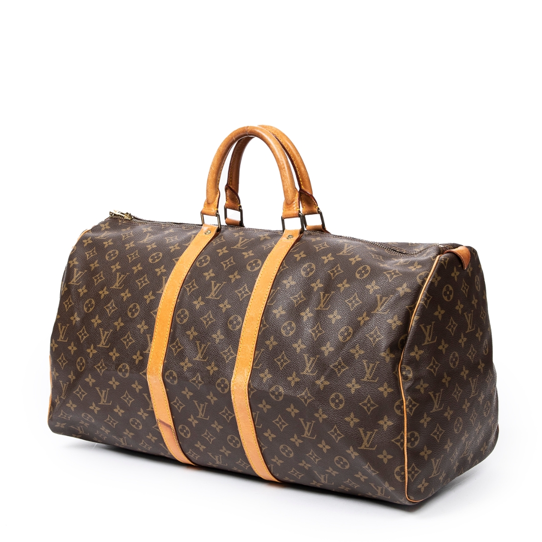 A vintage Louis Vuitton monogram coated canvas Keepall bag, showcasing one of the most iconic travel designs ever produced. Crafted from the house’s signature coated canvas with the instantly recognisable LV monogram pattern, the piece is complemented by natural leather trims, rolled handles, and gold-tone hardware, creating a timeless and distinguished aesthetic.