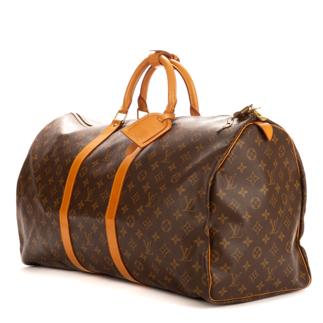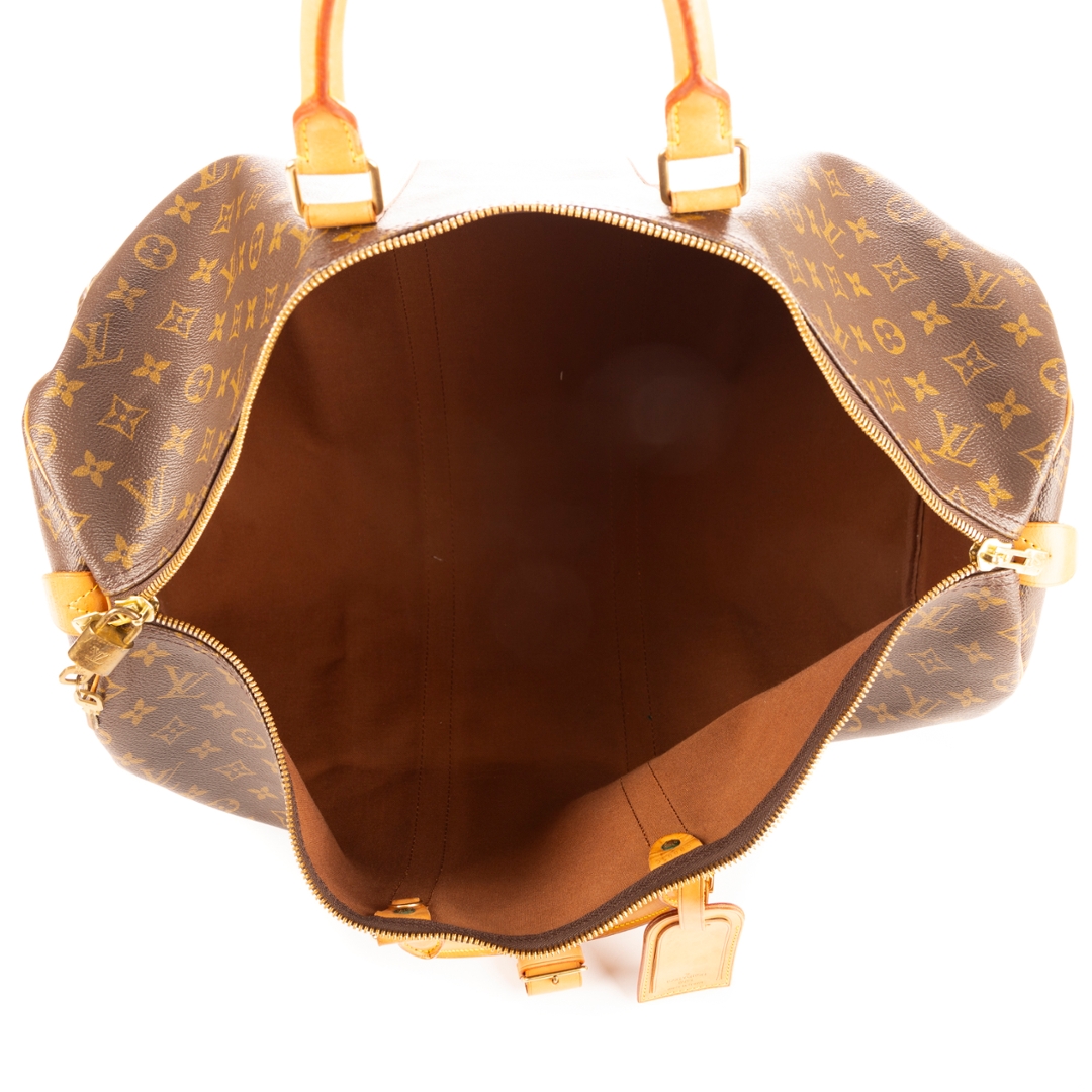 A vintage Louis Vuitton monogram coated canvas Keepall bag with a certificate of authenticity. Approximately 31cm height, 55cm width.