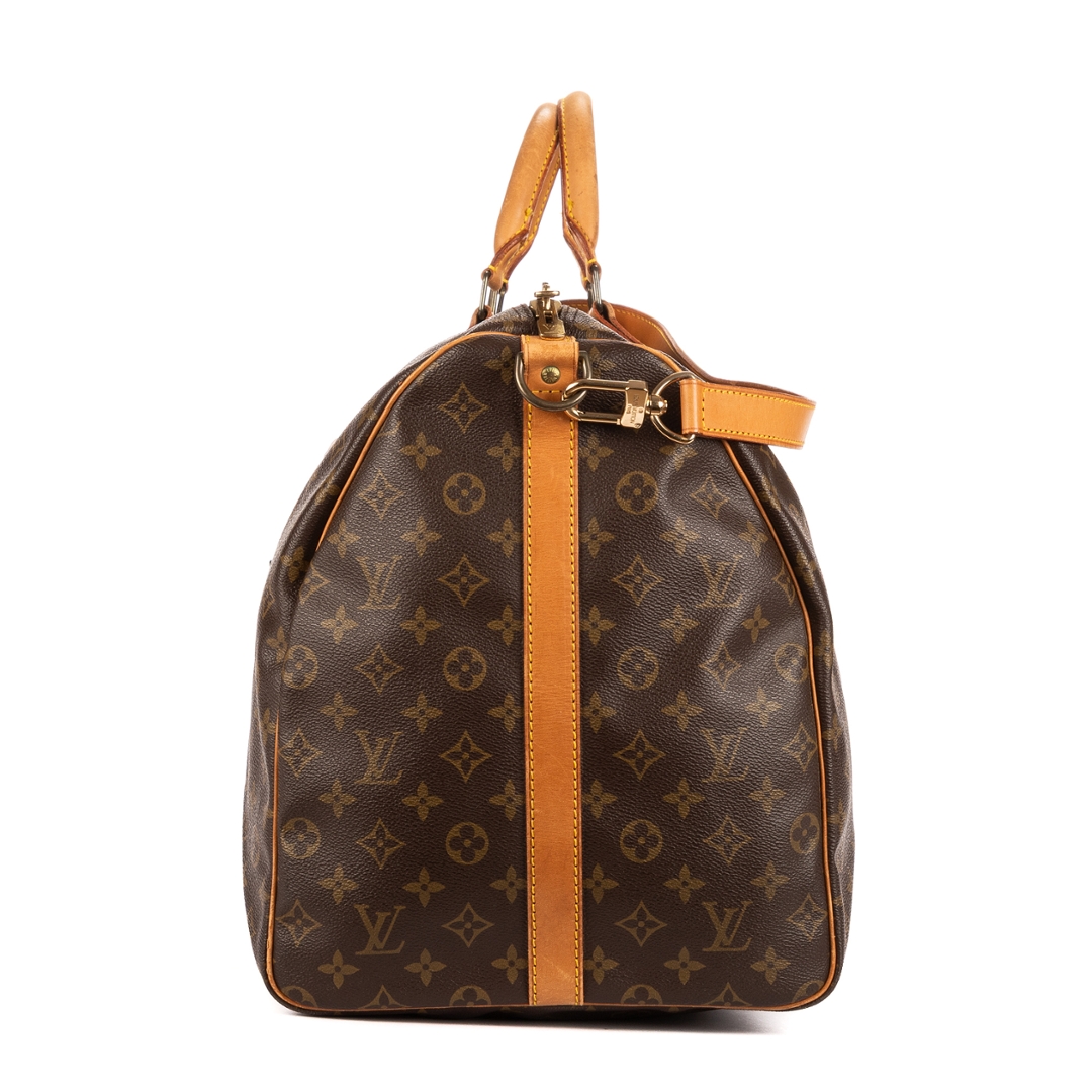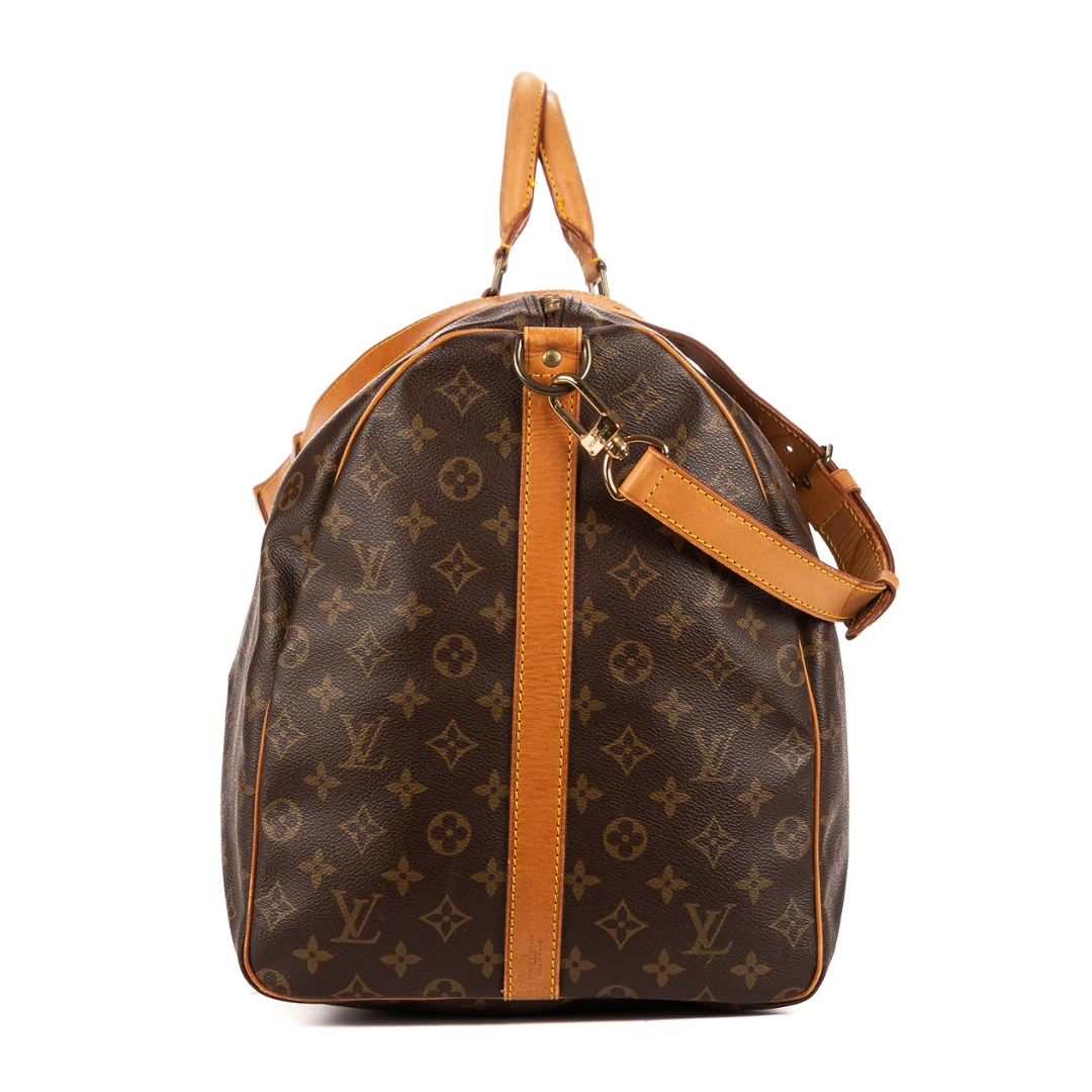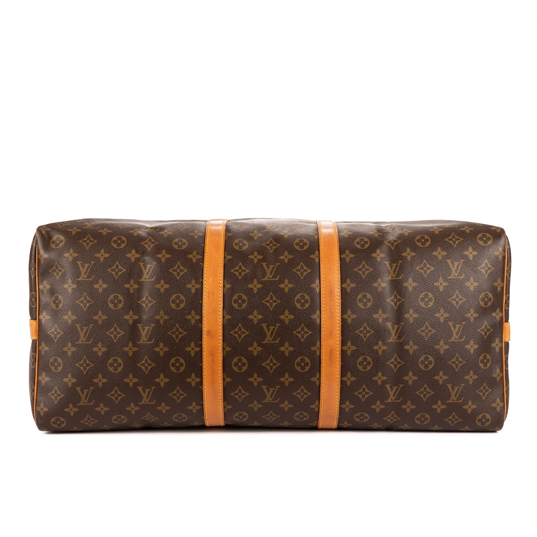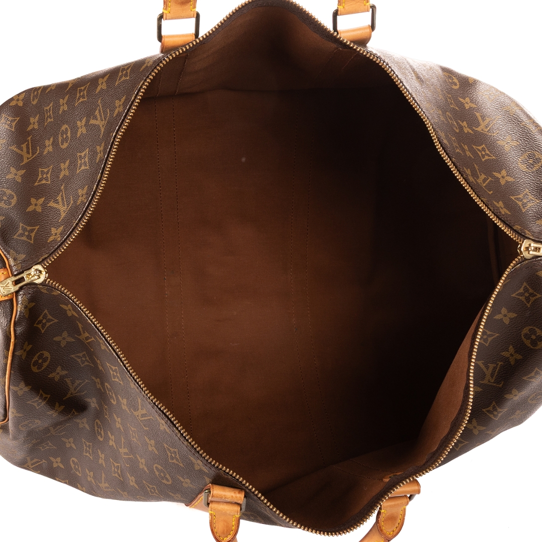 A vintage Louis Vuitton monogram coated canvas Keepall bag with a certificate of authenticity, Approximately 32cm height, 60cm width.