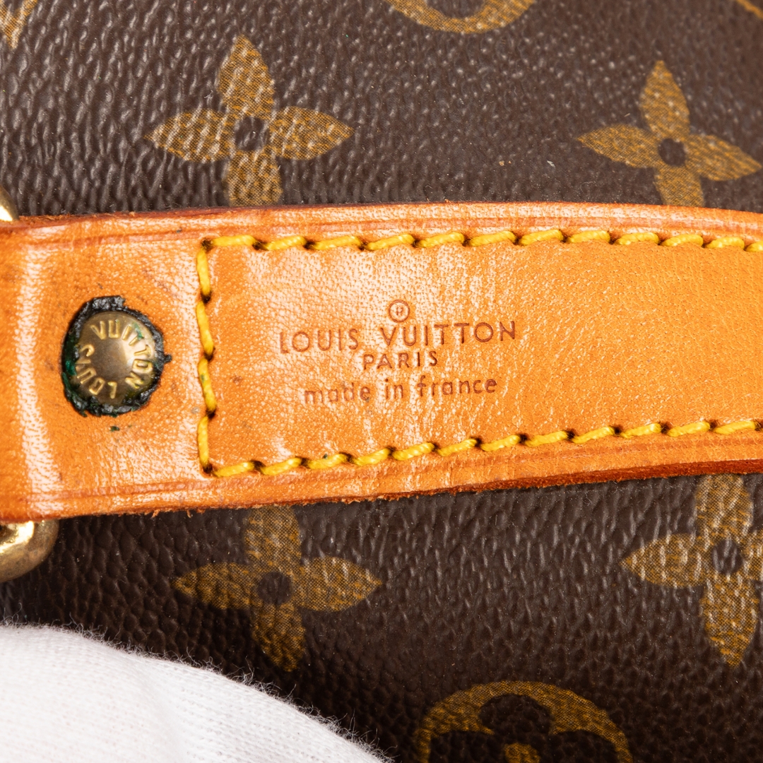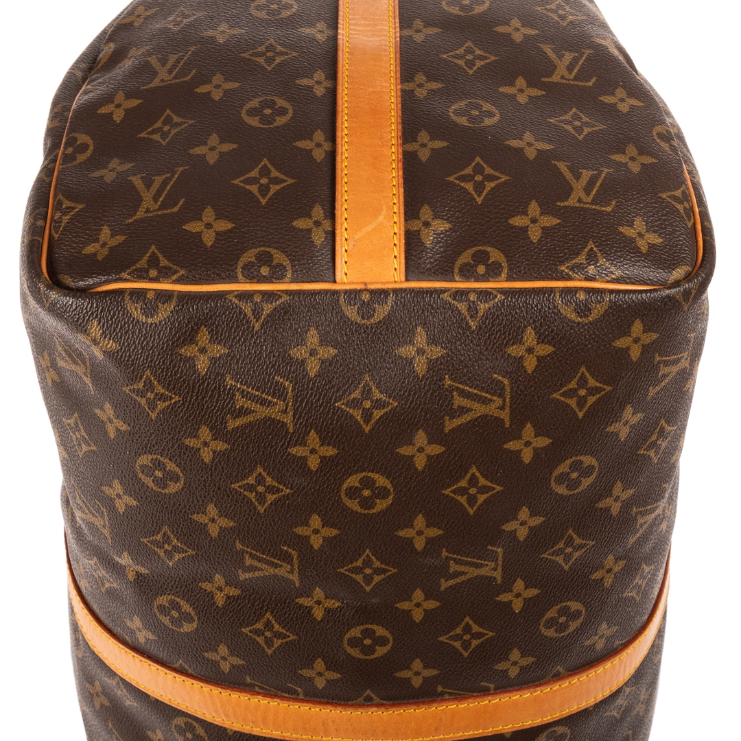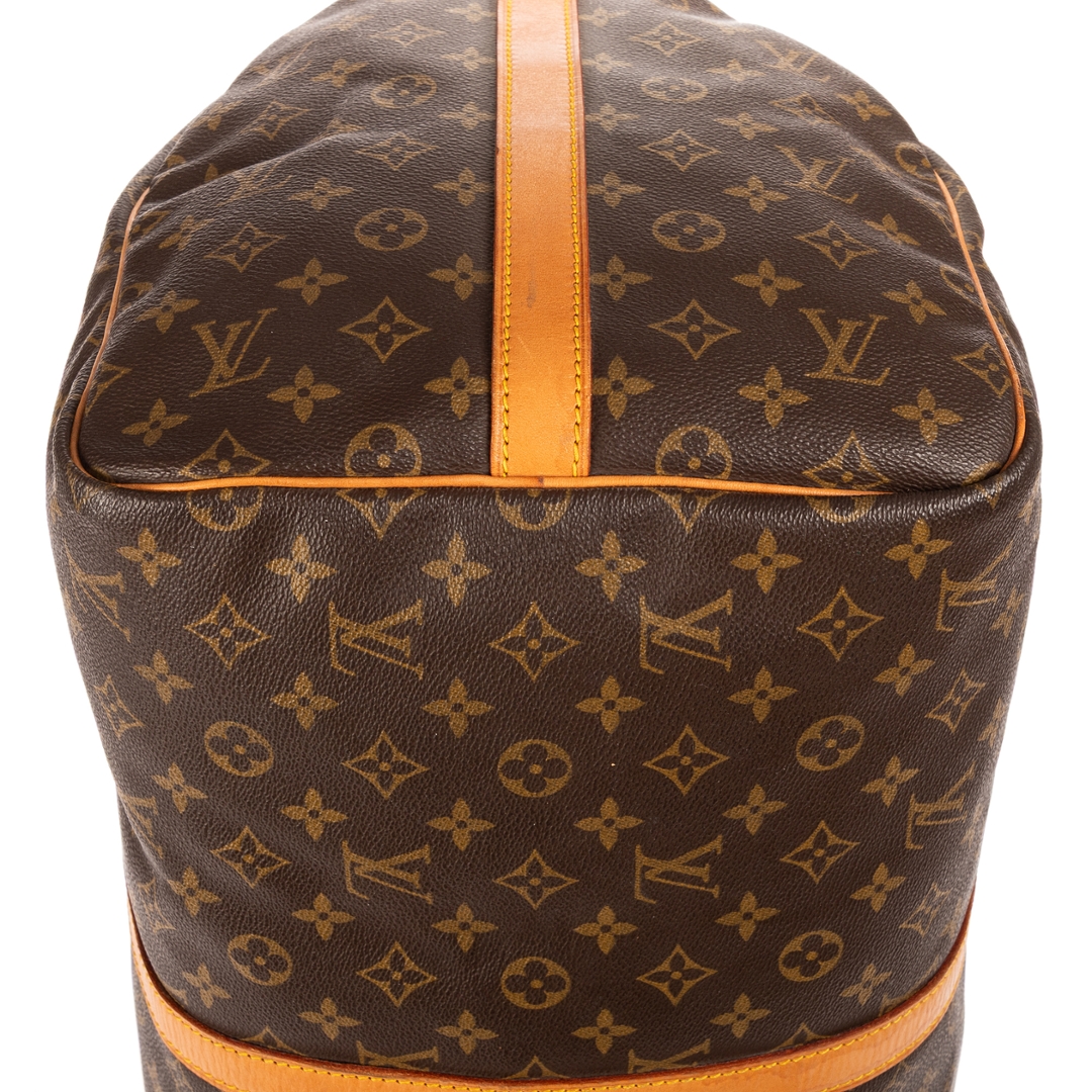 A vintage Louis Vuitton monogram coated canvas Keepall bag with a certificate of authenticity, Approximately 25cm height, 55cm width.