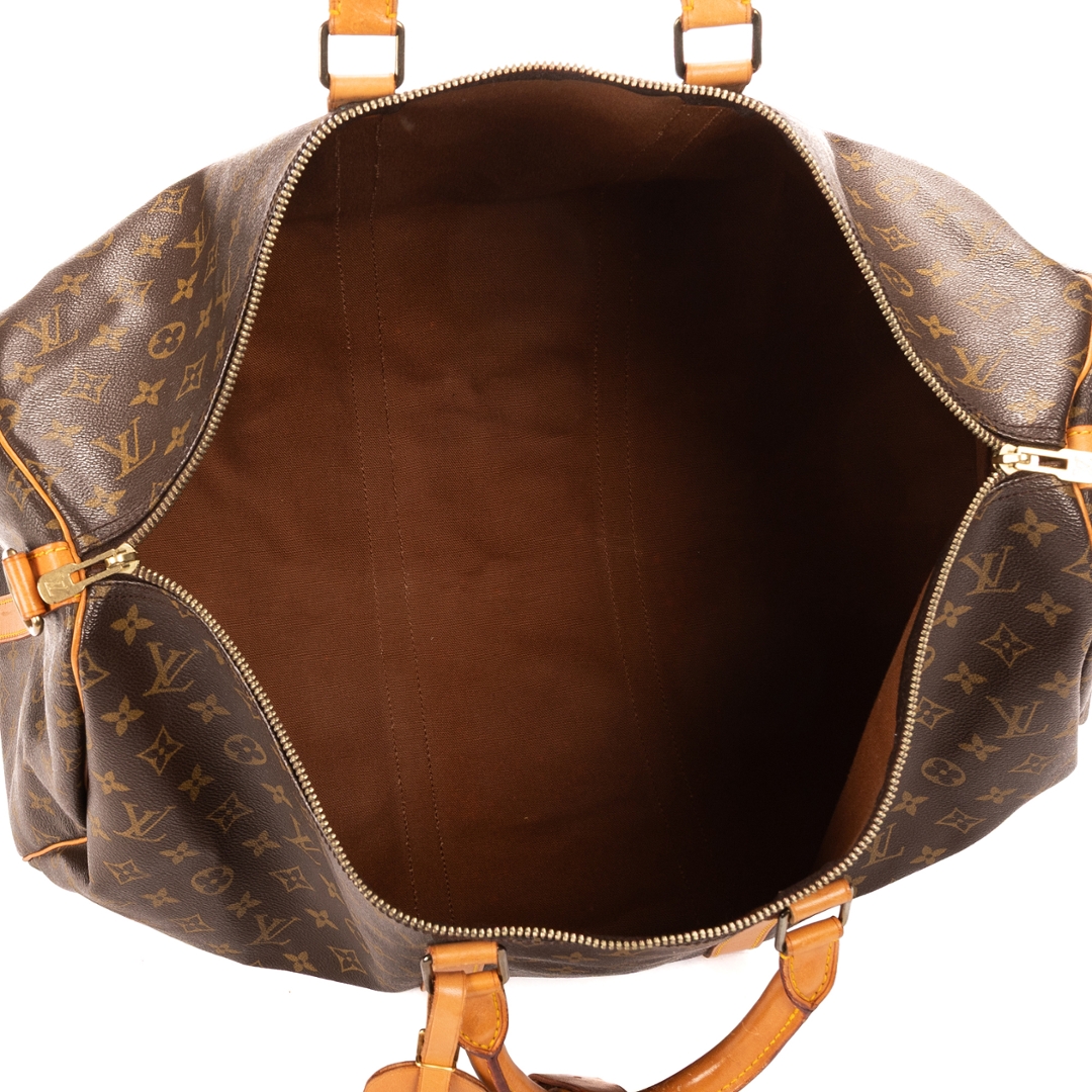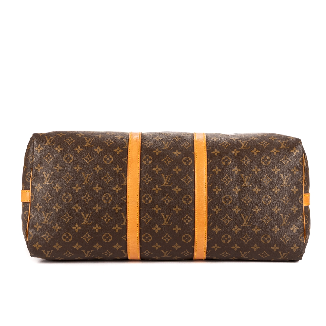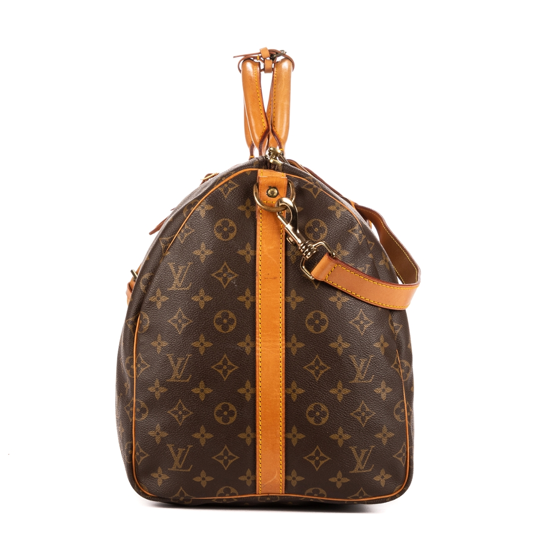 A vintage Louis Vuitton monogram coated canvas Keepall bag with a certificate of authenticity, Approximately 25cm height, 55cm width.