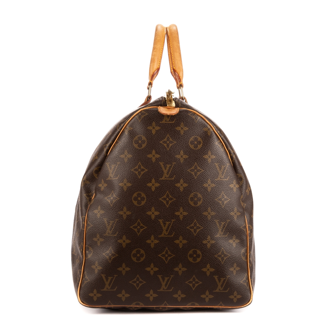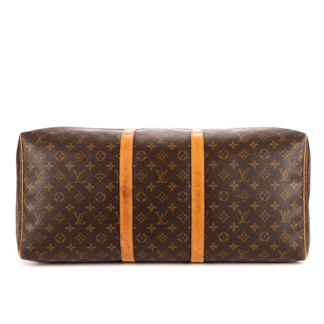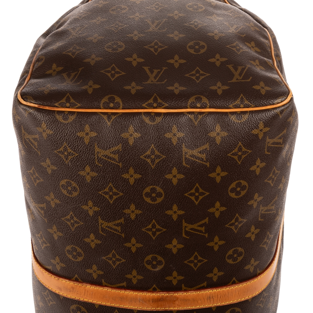 A vintage Louis Vuitton monogram coated Keepall bag with a certificate of authenticity, Approximately 28cm height, 55cm width.