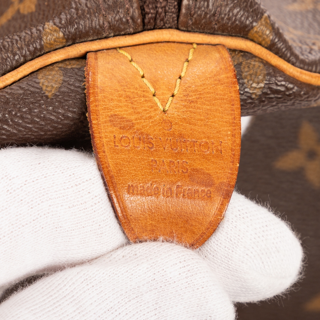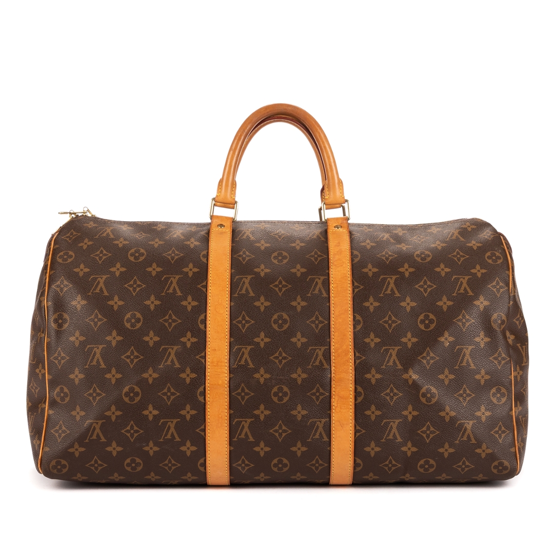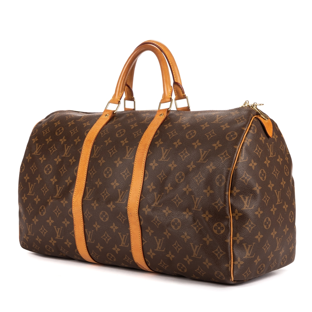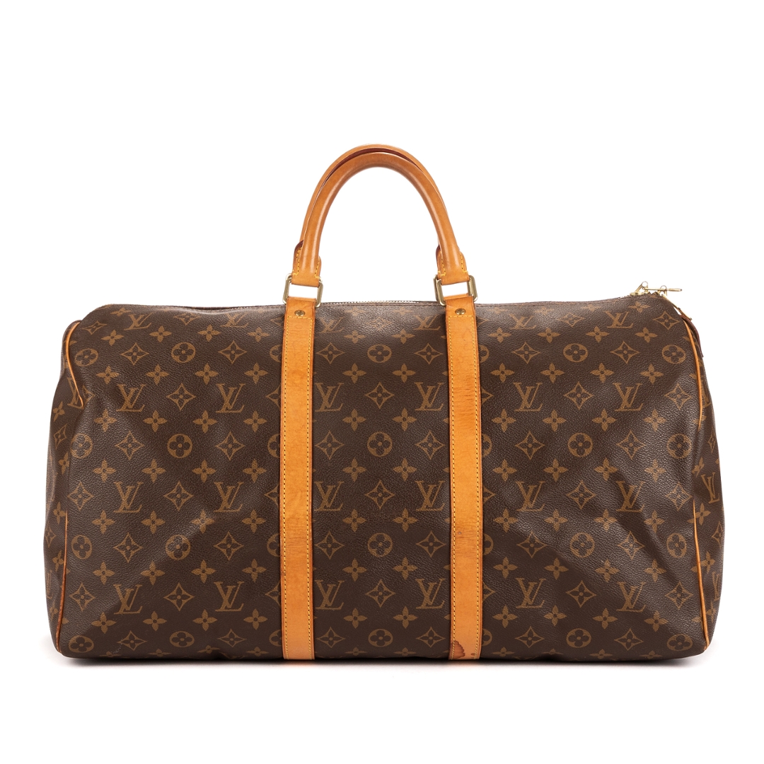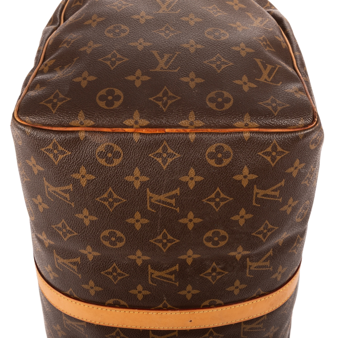 A vintage Louis Vuitton Keepall bag perfectly encapsulates the spirit of timeless travel elegance. Crafted from Louis Vuitton’s iconic monogram coated canvas, it showcases the instantly recognizable LV motif, paired with natural cowhide leather trim and handles that have developed a rich, warm patina over time. The combination of durability and refined design makes this bag a true travel essential.