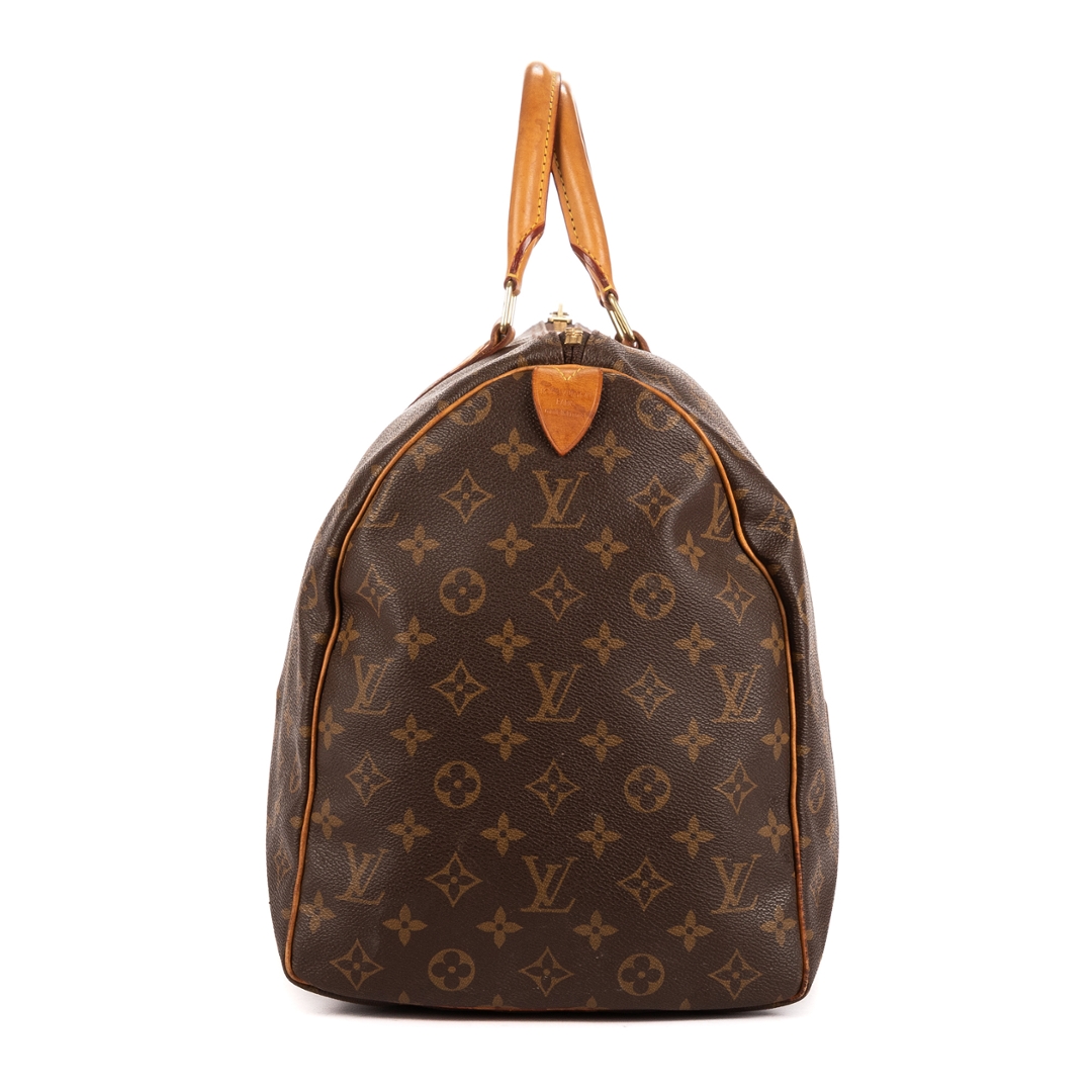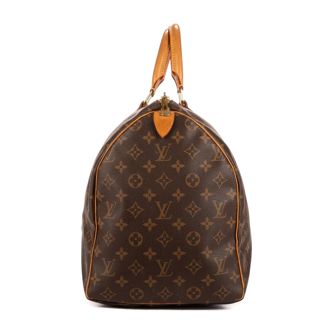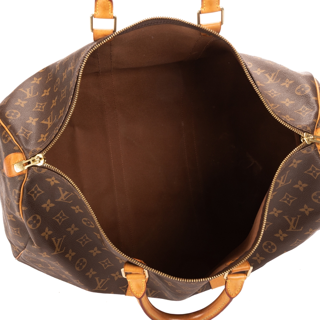 Measuring approximately 25cm in height and 48cm in width, it offers generous space without compromising on style. The lightweight yet structured silhouette and sturdy gold-tone hardware ensure both practicality and sophistication. Designed for seamless travel, this Keepall reflects Louis Vuitton’s long-standing dedication to quality and craftsmanship.