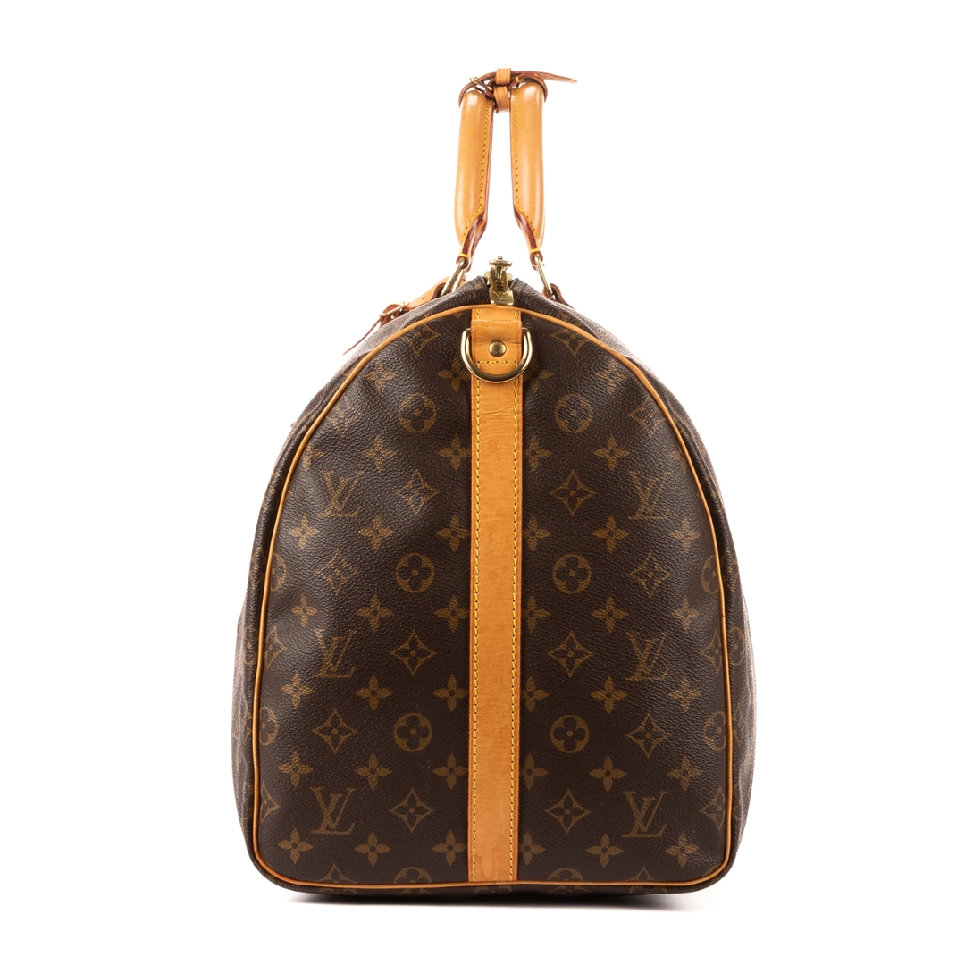 A vintage Louis Vuitton monogram coated canvas Keepall bag with a certificate of authenticity. Approximately 28cm height, 55cm width.