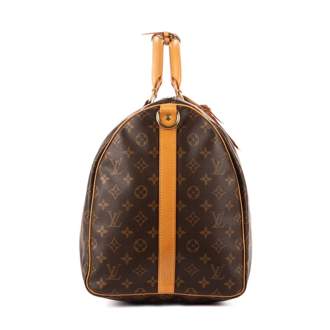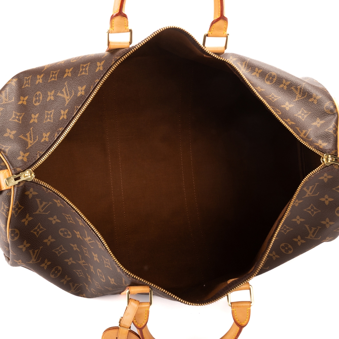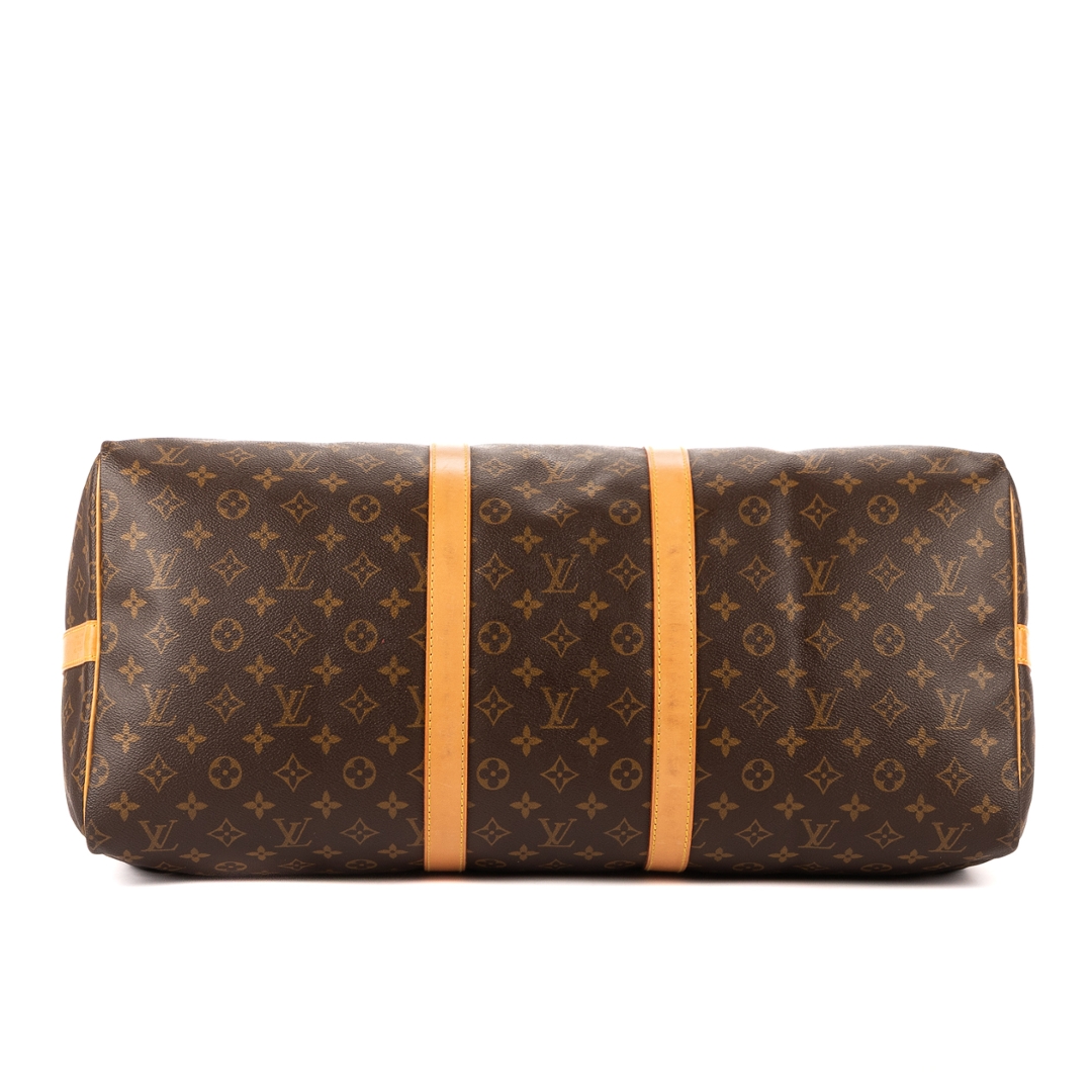 Designed for both style and practicality, the Keepall offers a spacious main compartment secured with a zip-top closure, ideal for travel or everyday use. The lightweight yet durable construction ensures ease of carrying, while the soft-sided structure allows for flexible packing. Measuring approximately 28cm in height and 55cm in width, it provides generous capacity within a sleek, versatile form.