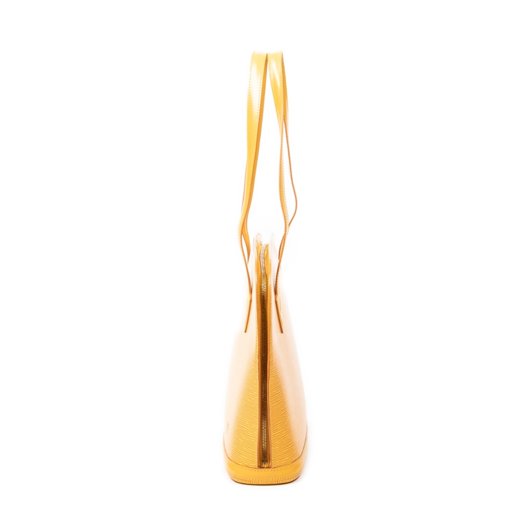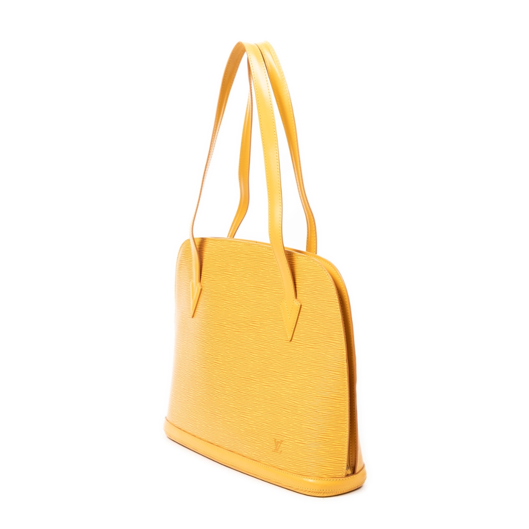 A vintage Louis Vuitton yellow calf leather Lussac bag with a certificate of authenticity. Approximately 30cm height, 38cm width.