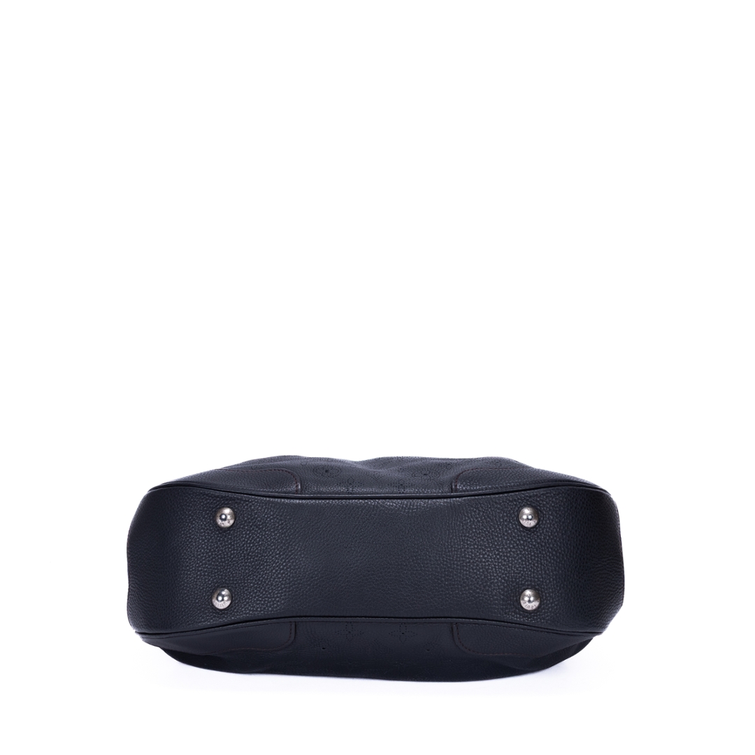 A vintage Louis Vuitton black calf leather Mahina Solar bag with a certificate of authenticity. Approximately 32cm height, 39cm width.