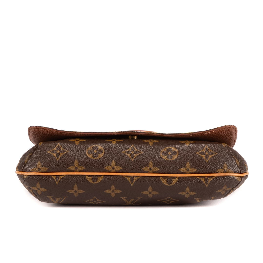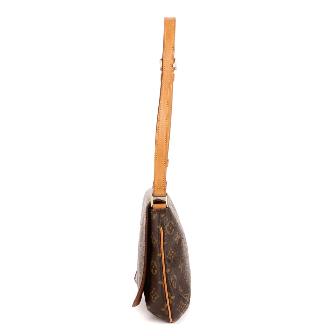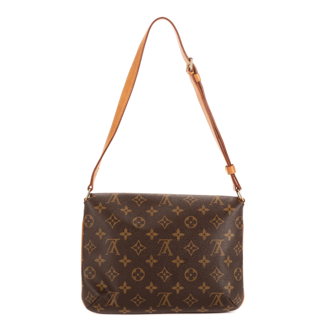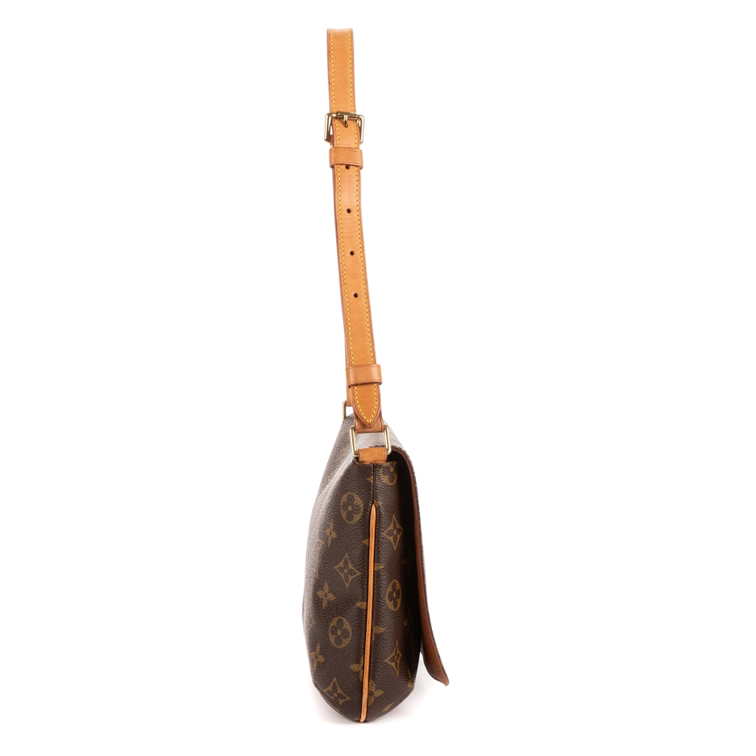 A vintage Louis Vuitton monogram coated canvas Musette Tango bag with a certificate of authenticity, Approximately 19cm height, 25cm width.