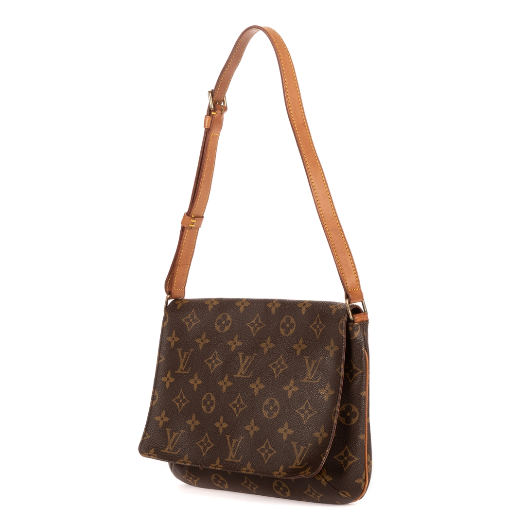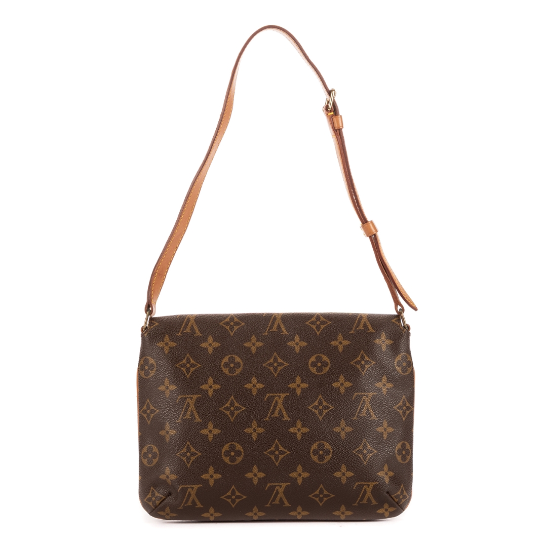 A vintage Louis Vuitton monogram coated canvas Musette Tango bag with a certificate of authenticity, Approximately 19cm height, 25cm width.