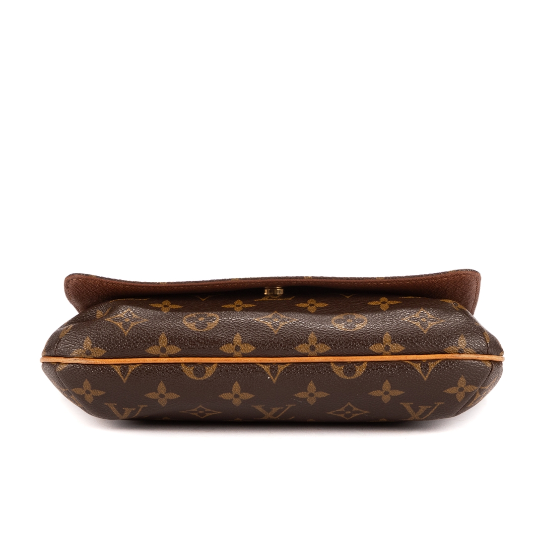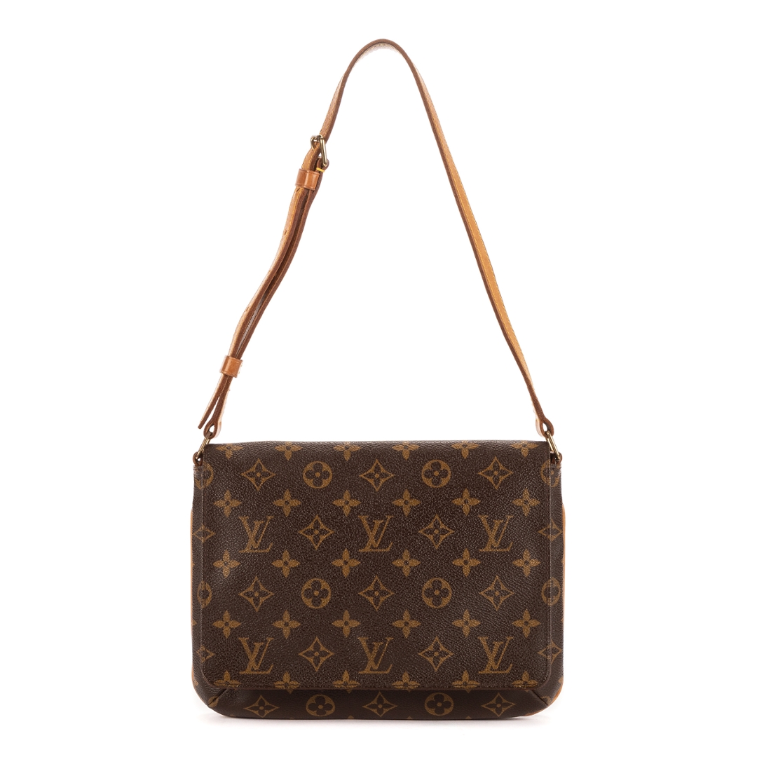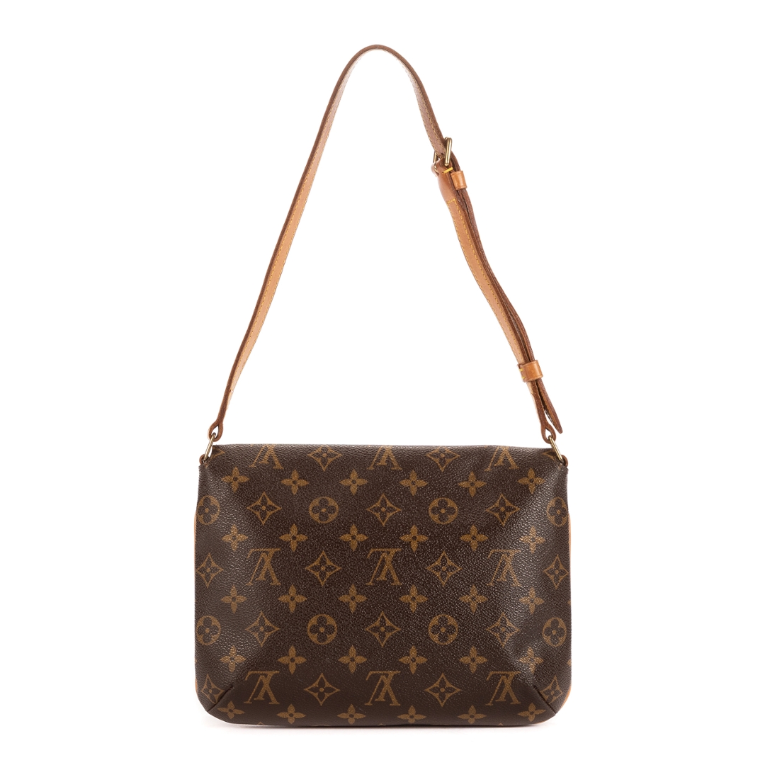 A vintage Louis Vuitton monogram coated canvas Musette Tango bag with a certificate of authenticity, Approximately 19cm height, 25cm width.