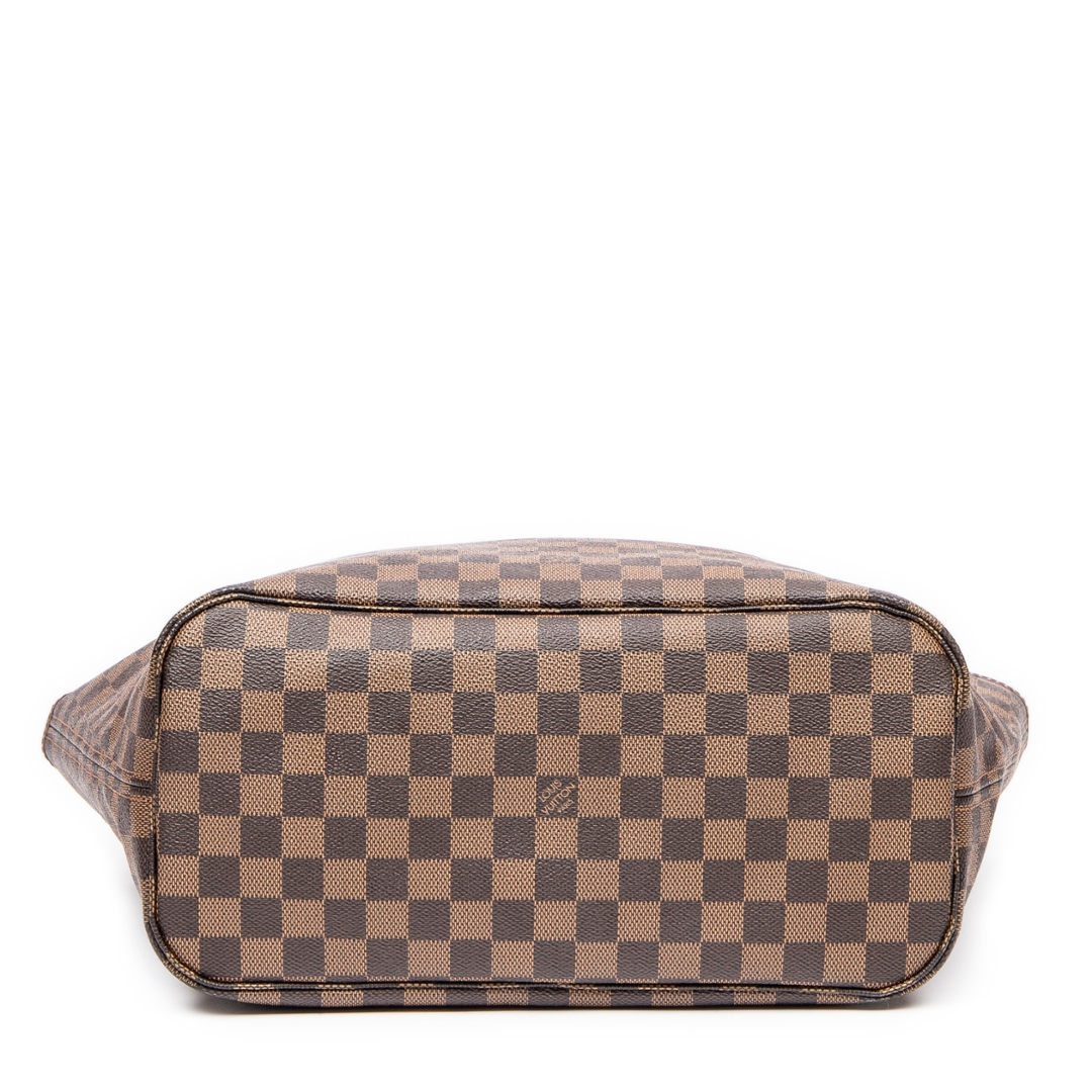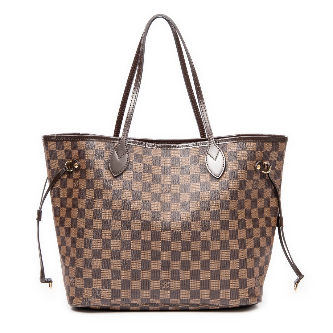 A vintage Louis Vuitton Damier coated canvas Neverfull bag that epitomises timeless elegance and practicality. Crafted from Louis Vuitton’s iconic Damier Ebene coated canvas, this sophisticated tote features smooth chocolate-brown leather trim and gleaming gold-tone hardware. The instantly recognisable check pattern and refined detailing make it a quintessential piece for those who value both luxury and versatility.