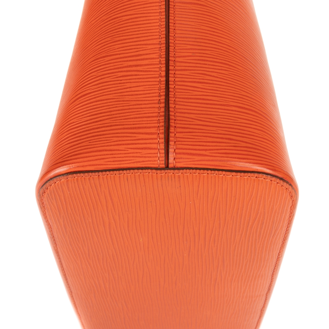 A vintage Louis Vuitton orange calf leather Neverfull bag with a certificate of authenticity. Approximately 22cm height, 29cm width.