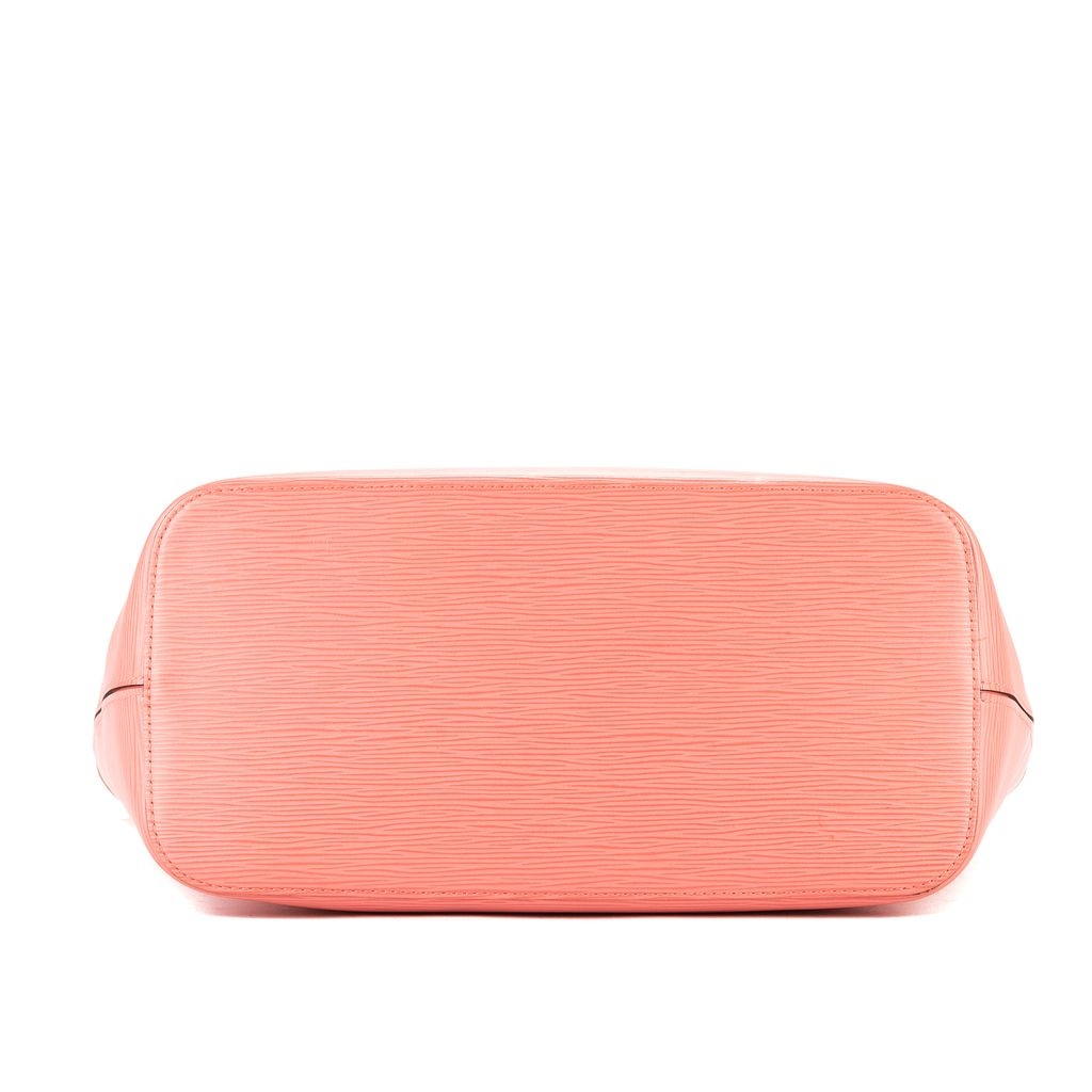 A vintage Louis Vuitton pink calf leather Neverfull bag is a uniquely stunning and functional accessory. This authentic piece, accompanied by a certificate of authenticity, is a rare find in the brand’s distinctive Epi leather, celebrated for its durability and beautiful ribbed texture. The striking pink hue gives this iconic silhouette a fresh and luxurious feel, making it a bold statement piece.