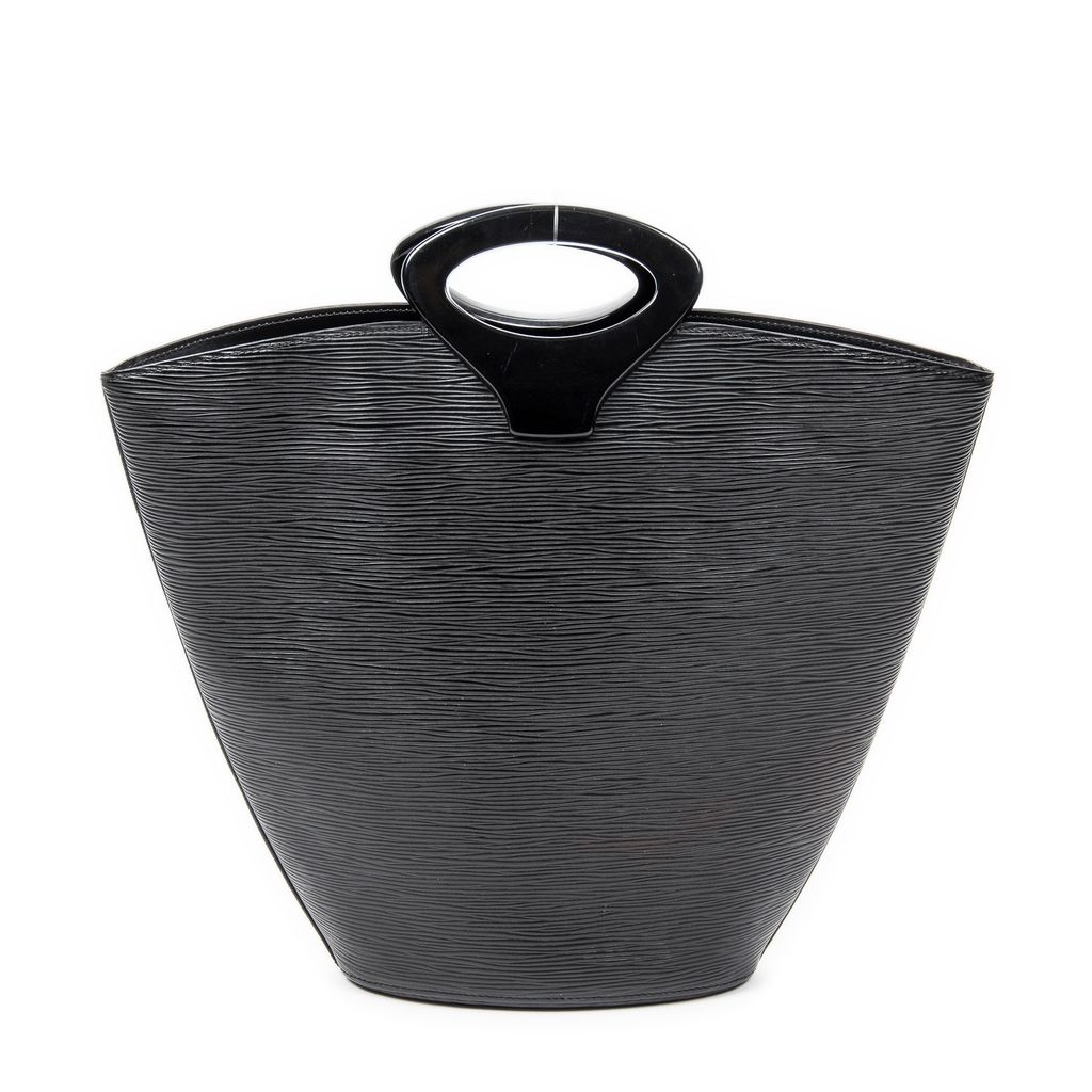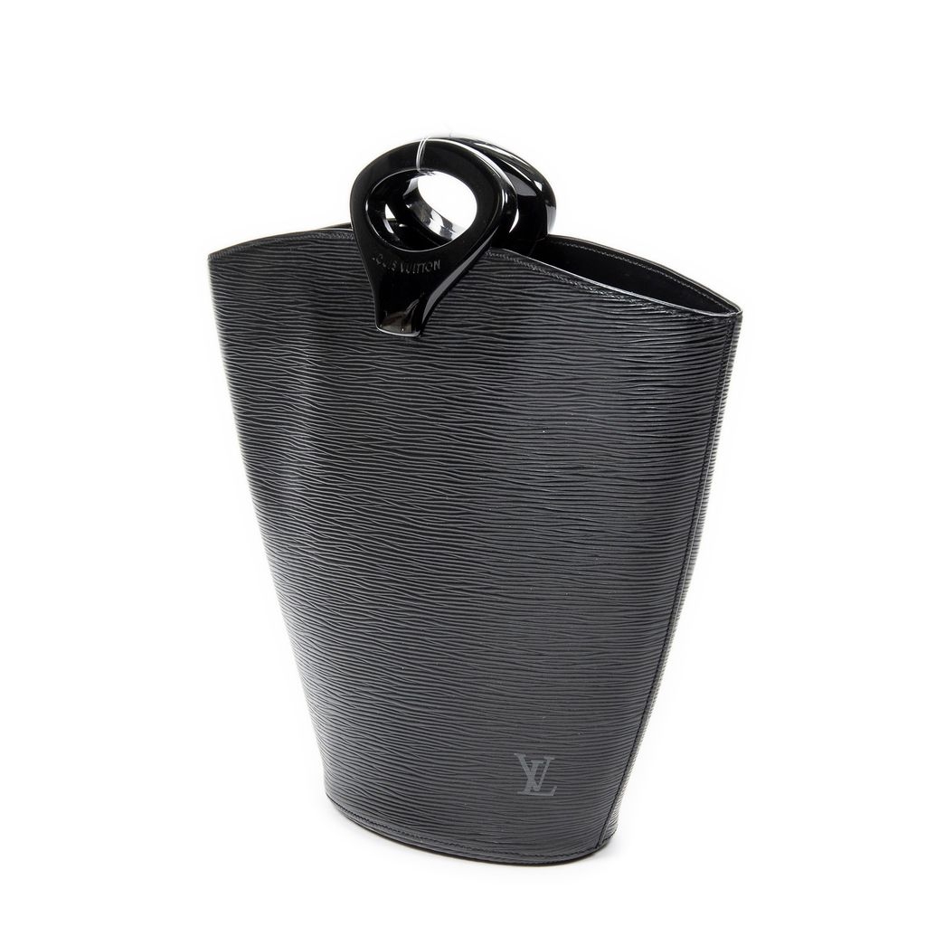 A vintage Louis Vuitton black calf leather Noctambule bag with a certificate of authenticity, Approximately 29cm height, 18cm width.