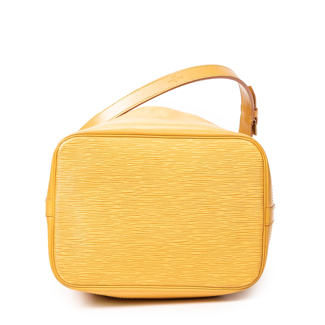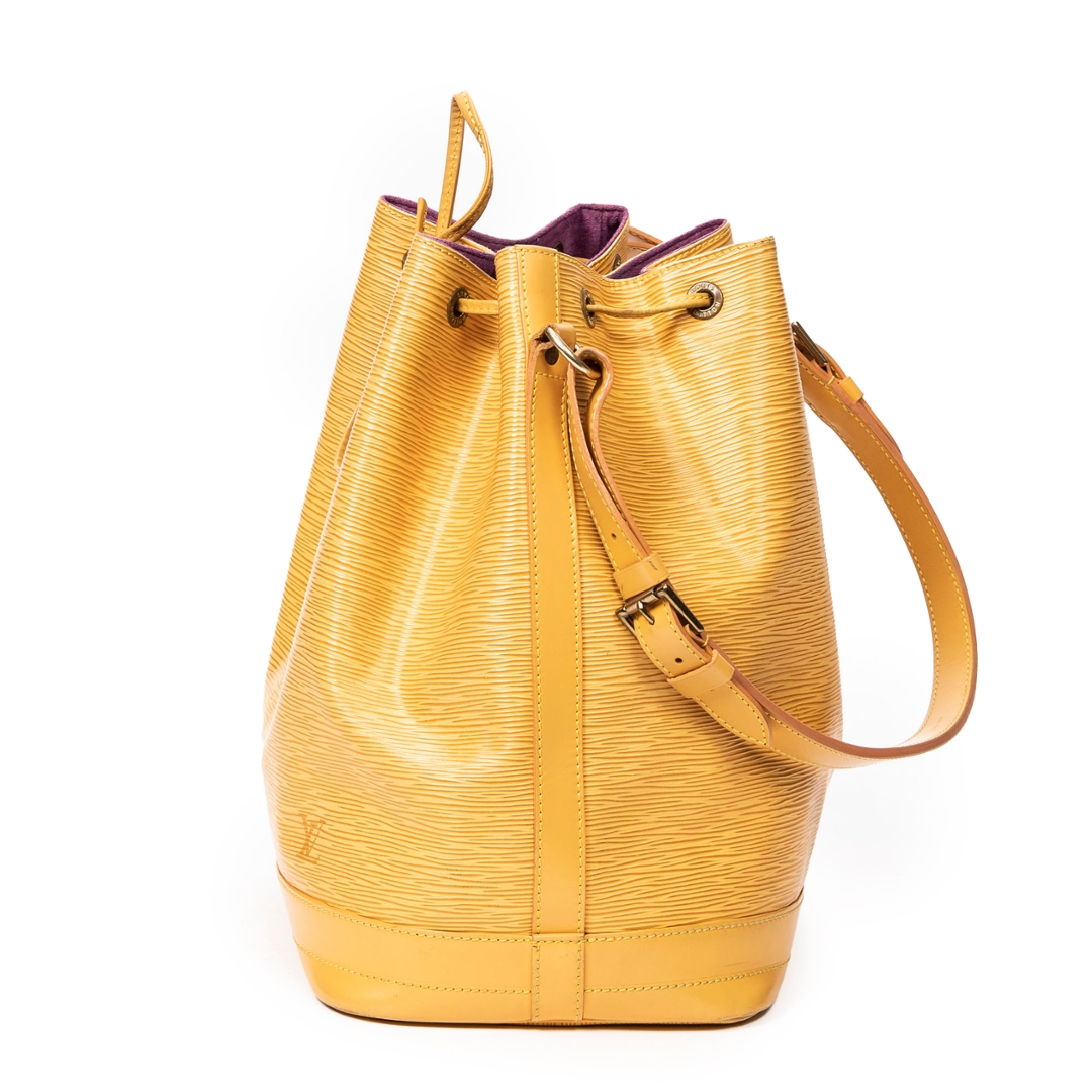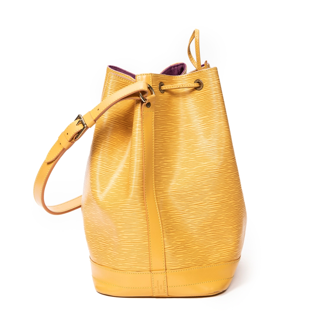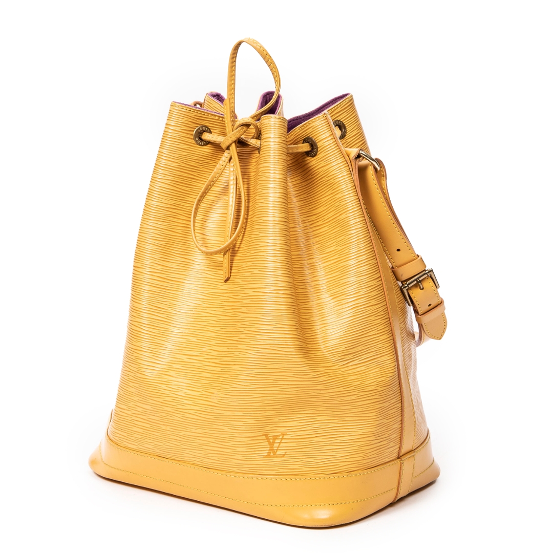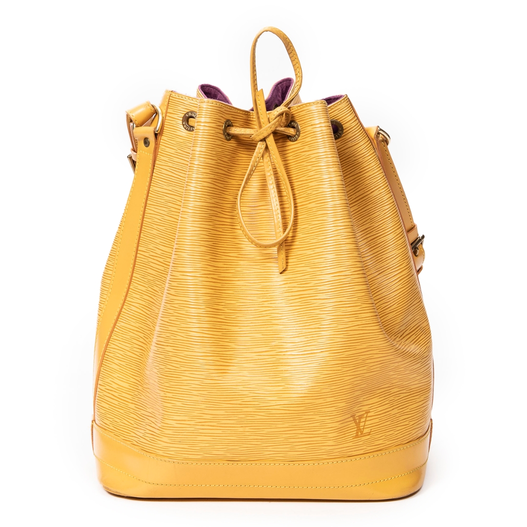A vintage Louis Vuitton yellow calf leather Noe bag with a certificate of authenticity. Approximately 34cm height, 27cm width.