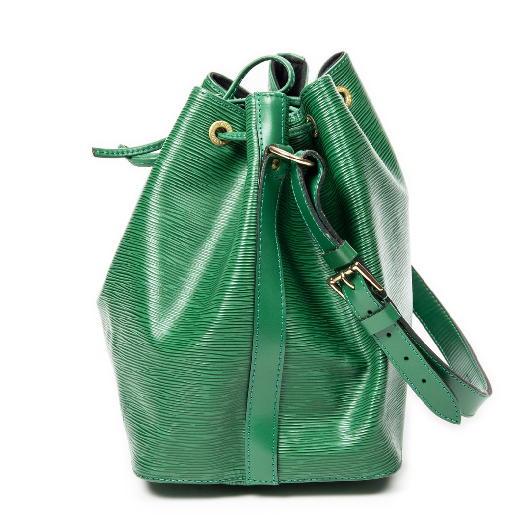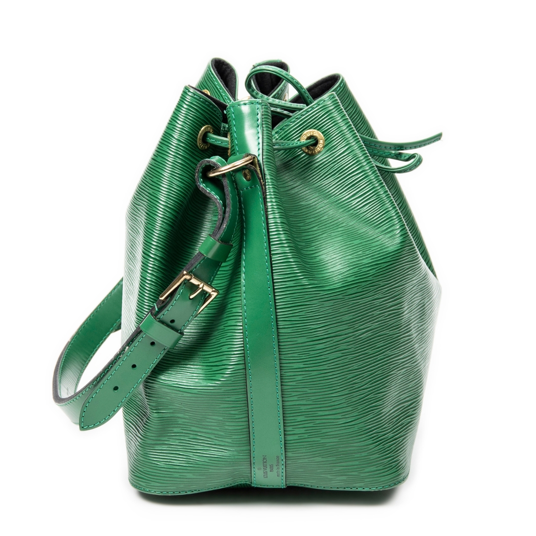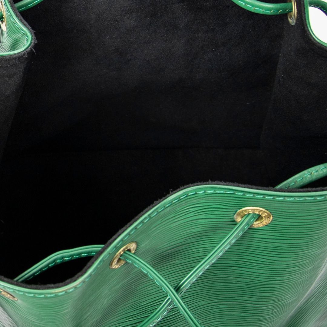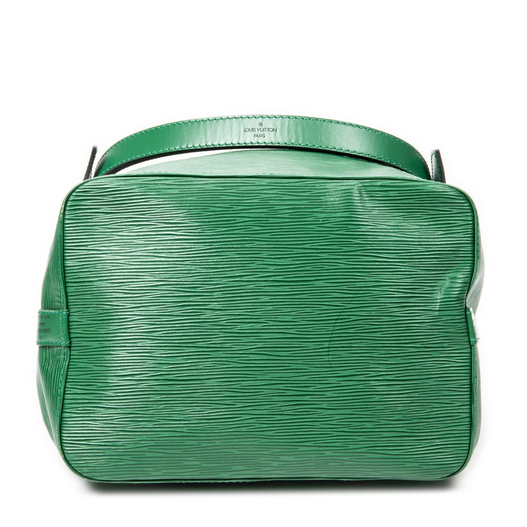 A vintage Louis Vuitton green calf leather Noe bag with a certificate of authenticity. Approximately 26cm height, 24cm width.