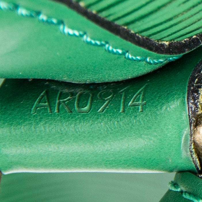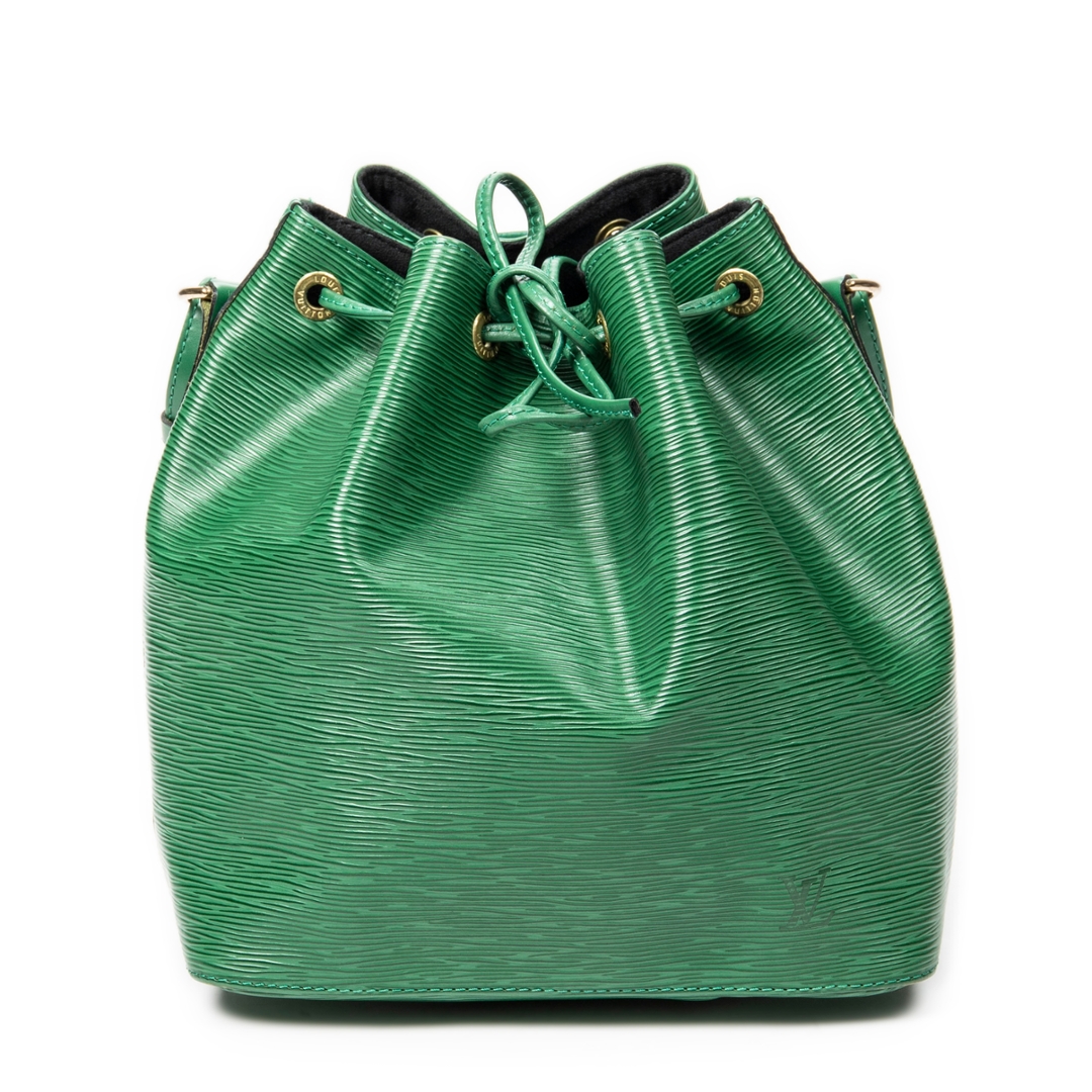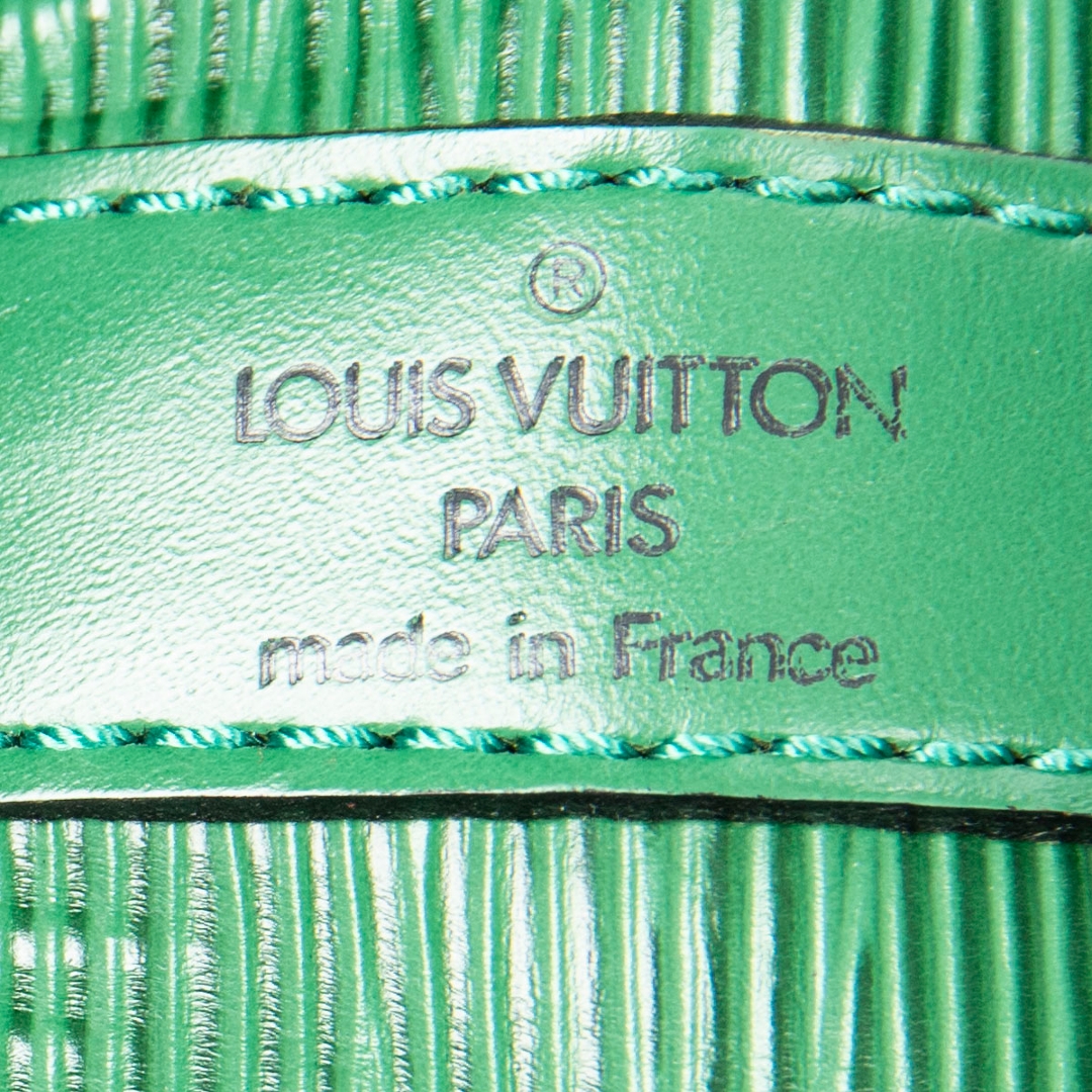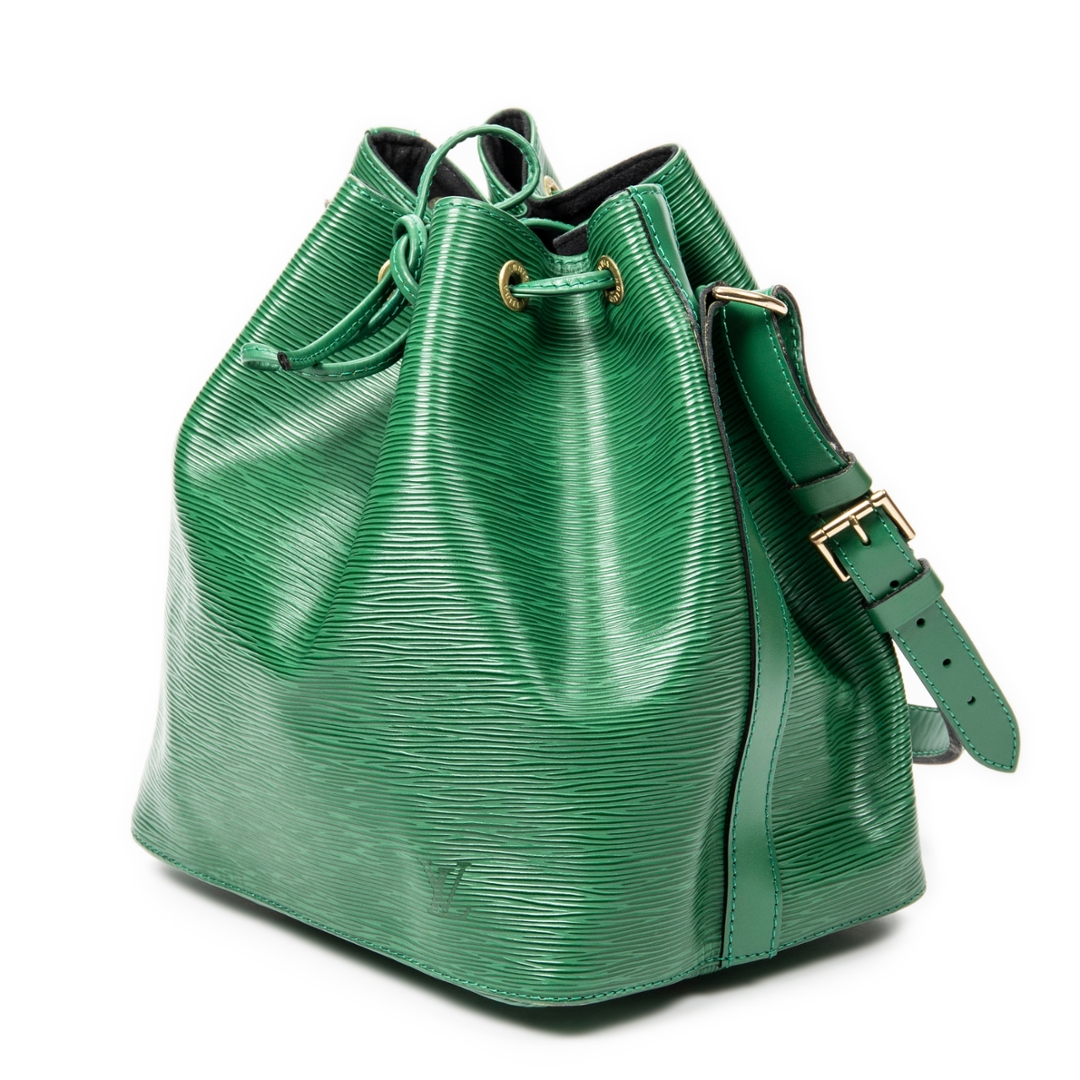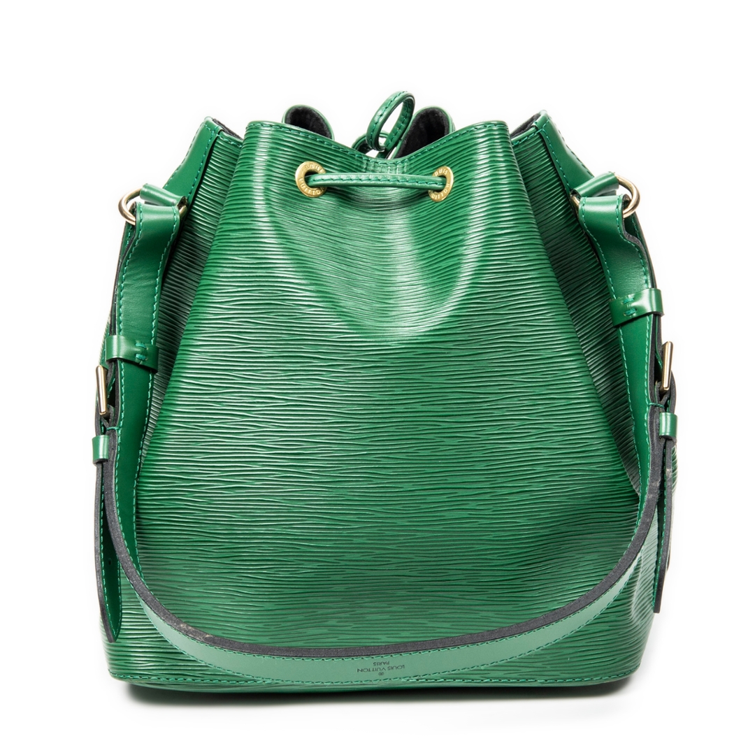 A vintage Louis Vuitton green calf leather Noe bag with a certificate of authenticity. Approximately 26cm height, 24cm width.