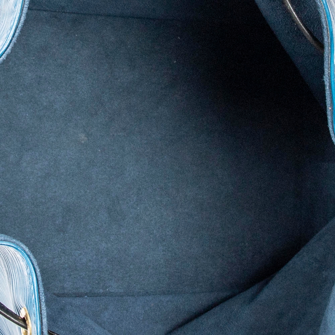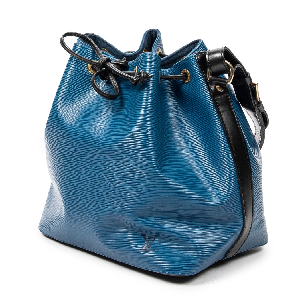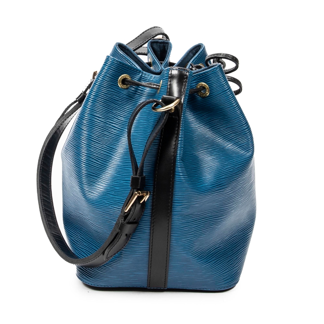 A vintage blue and black calf leather Louis Vuitton Noe Bicolor bag with a certificate of authenticity, Approximately 26cm height, 24cm width.