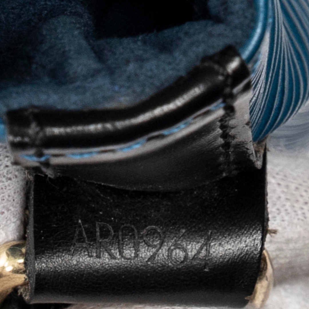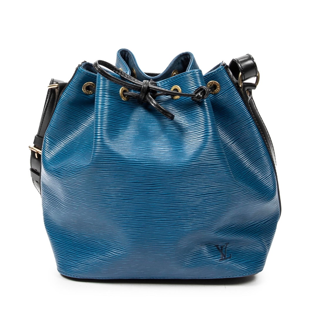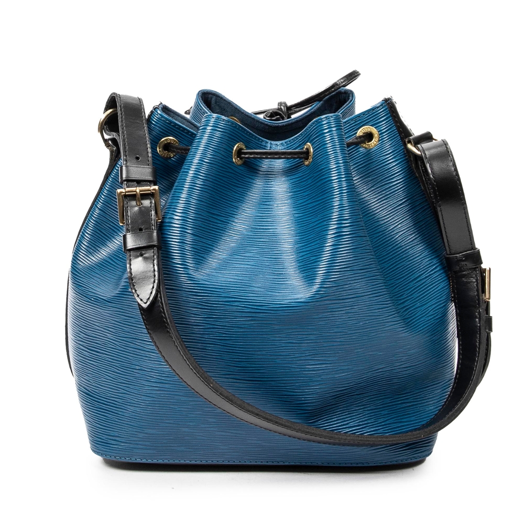 A vintage blue and black calf leather Louis Vuitton Noe Bicolor bag with a certificate of authenticity, Approximately 26cm height, 24cm width.
